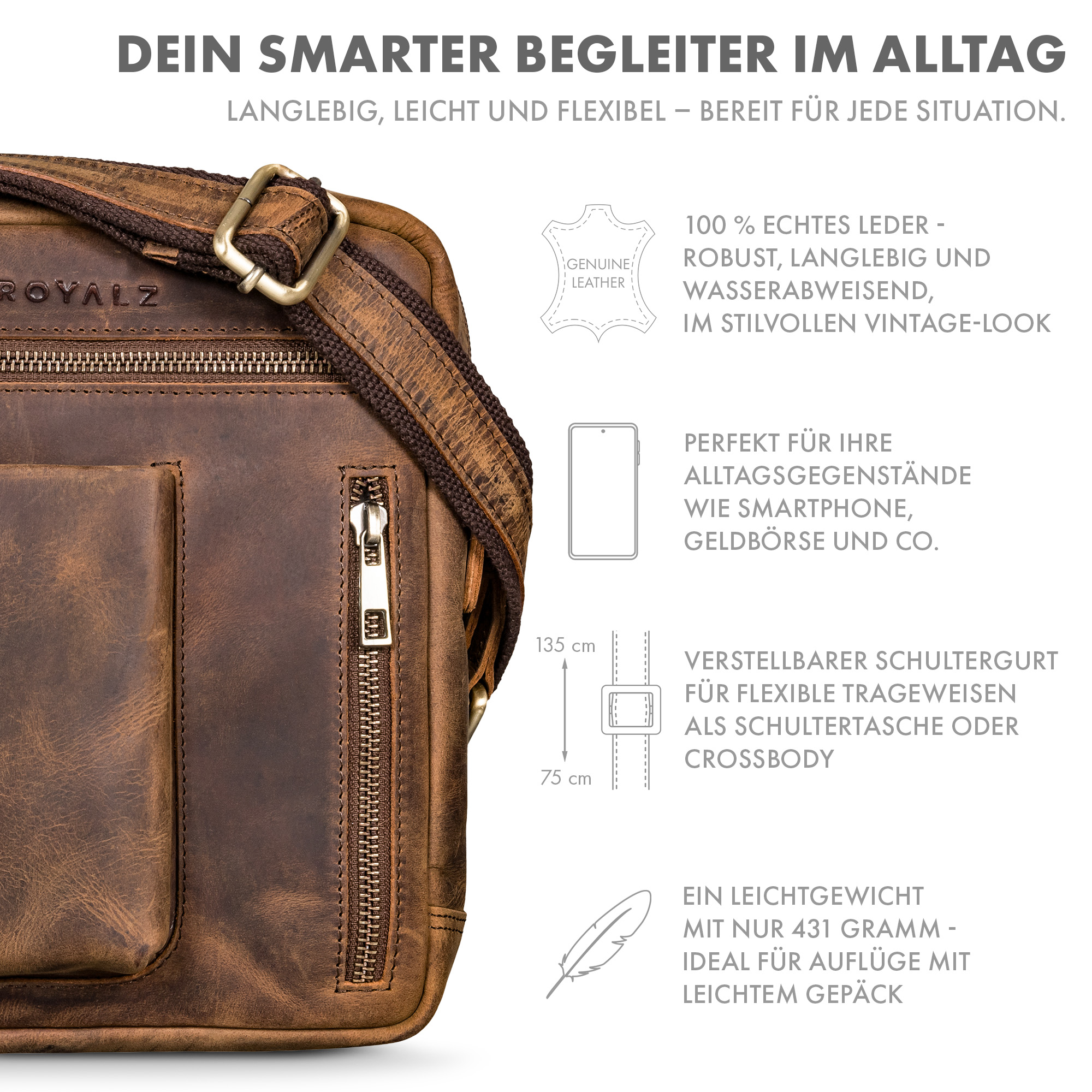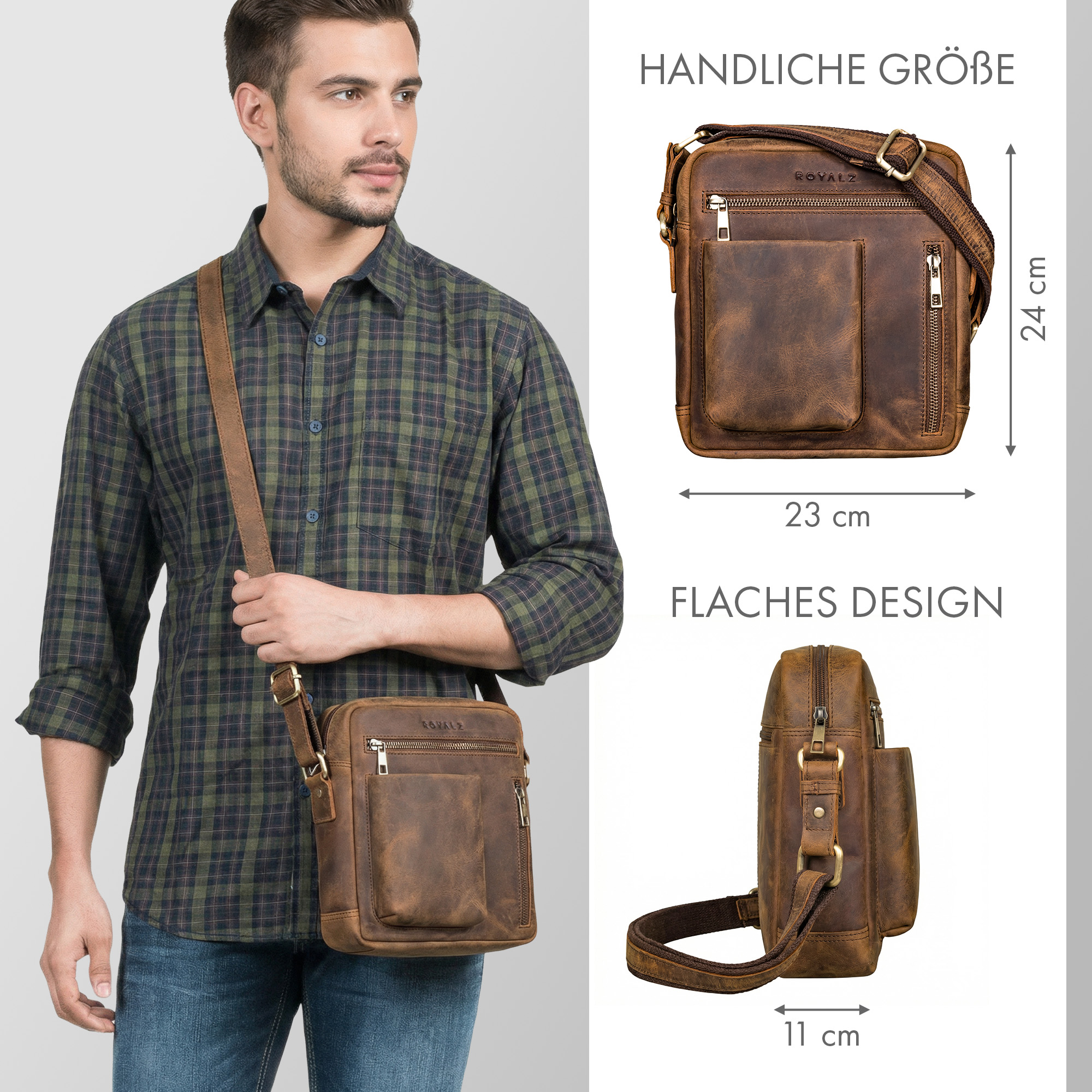 ROYALZ "Antonio" Herren Umhängetasche Leder klein – Echtleder Crossbody Ledertasche für Männer im Vintage Look – kompakte Messenger Bag mit Reißverschluss