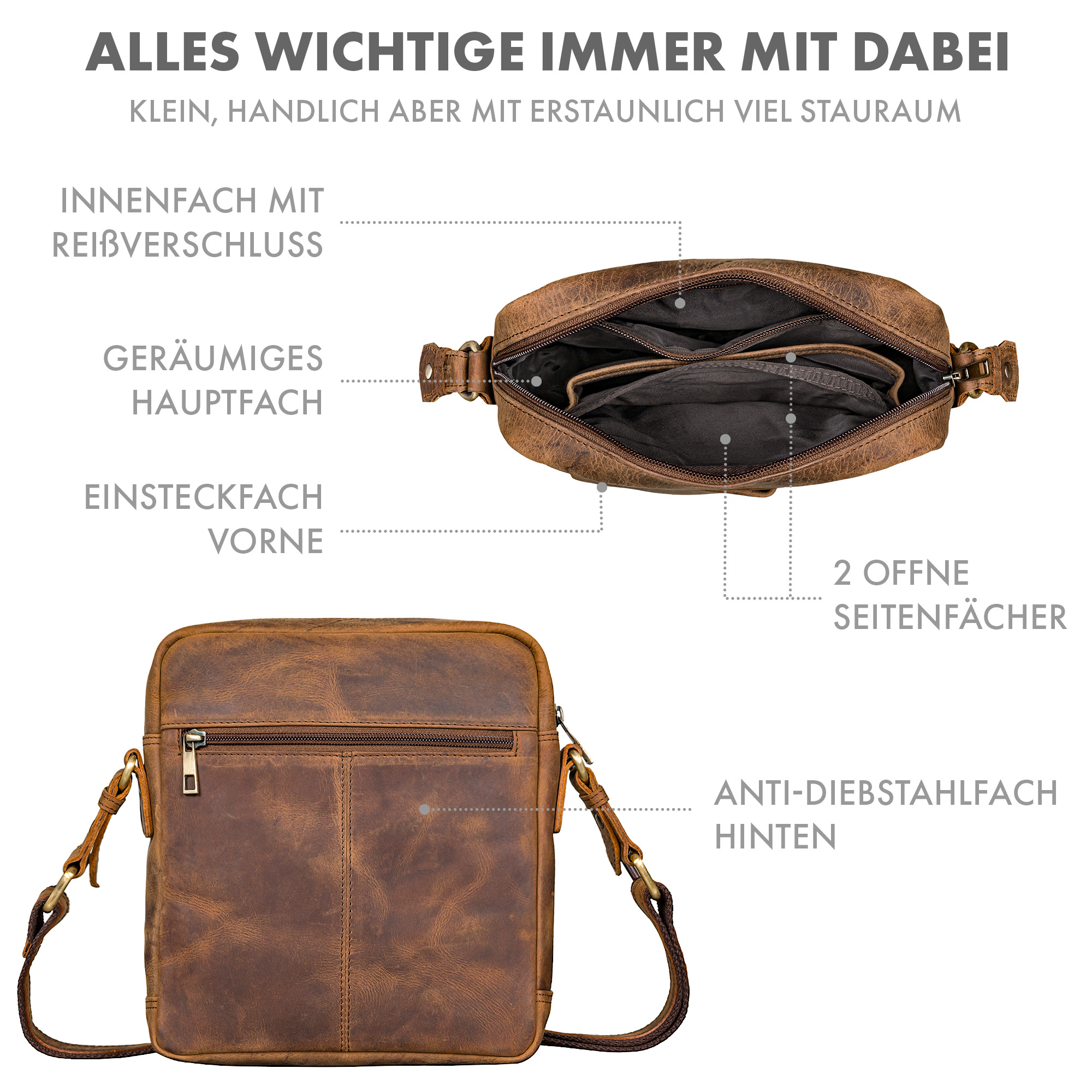 Die perfekte Größe für unterwegs – „Antonio“ kleine Herren Umhängetasche aus echtem Leder im Vintage Stil
