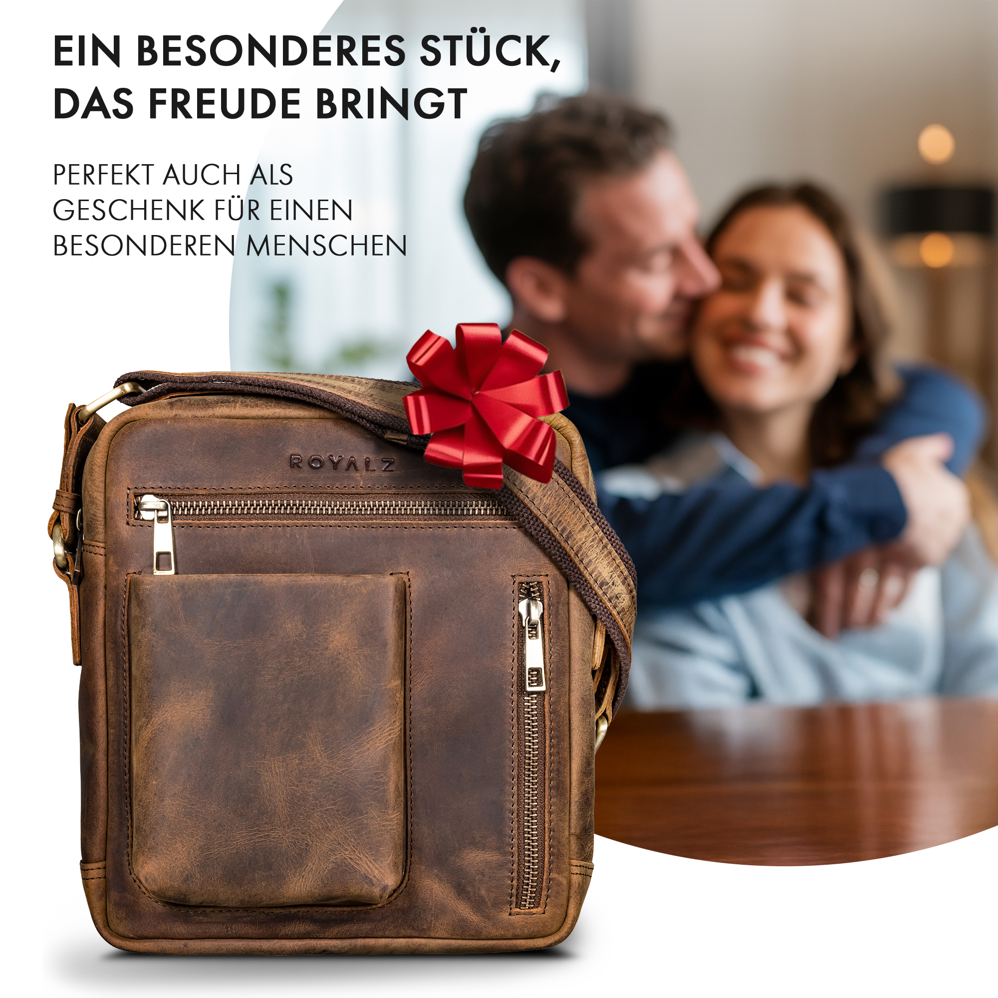 - Lieferumfang: 1 x ROYALZ „Antonio“ Herren Umhängetasche klein Leder