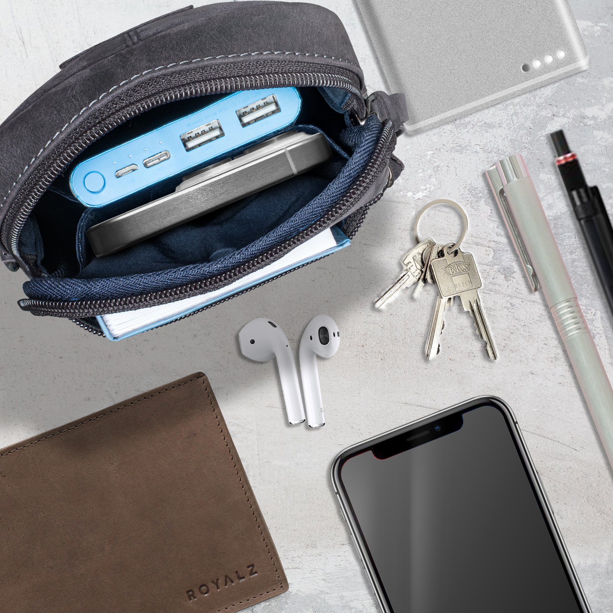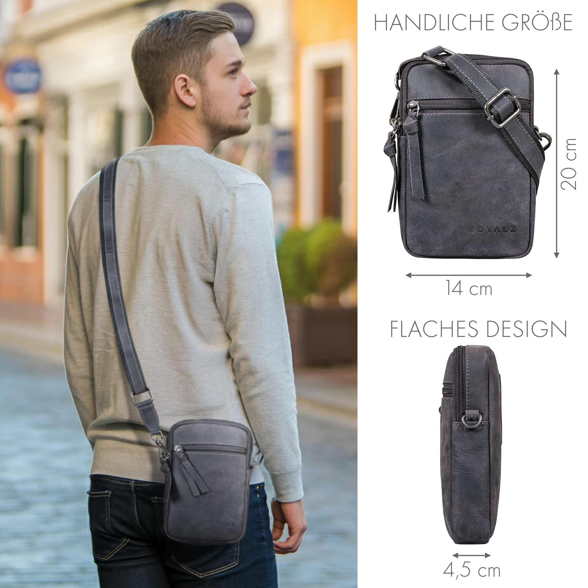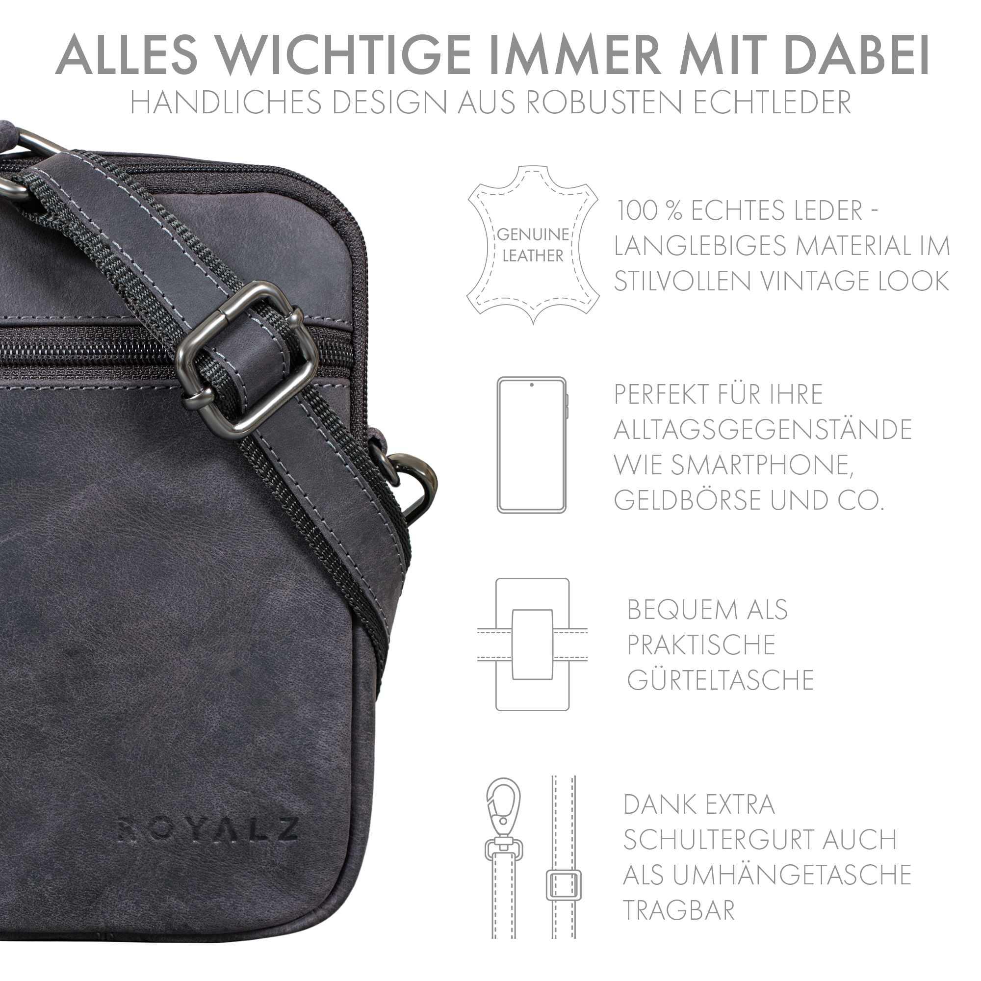 ROYALZ "Gilbert" 3-in-1 Umhängetasche Herren Klein Leder - Multifunktionale Tasche klein als Gürteltasche Schultertasche und Handytasche - kleine Ledertasche zum Umhängen