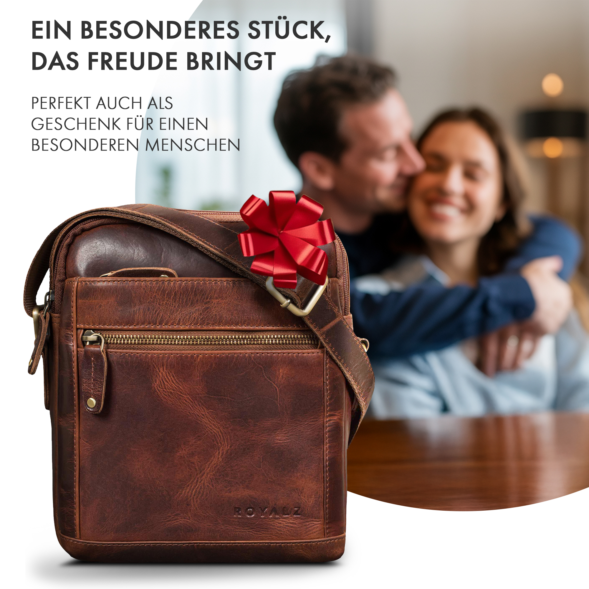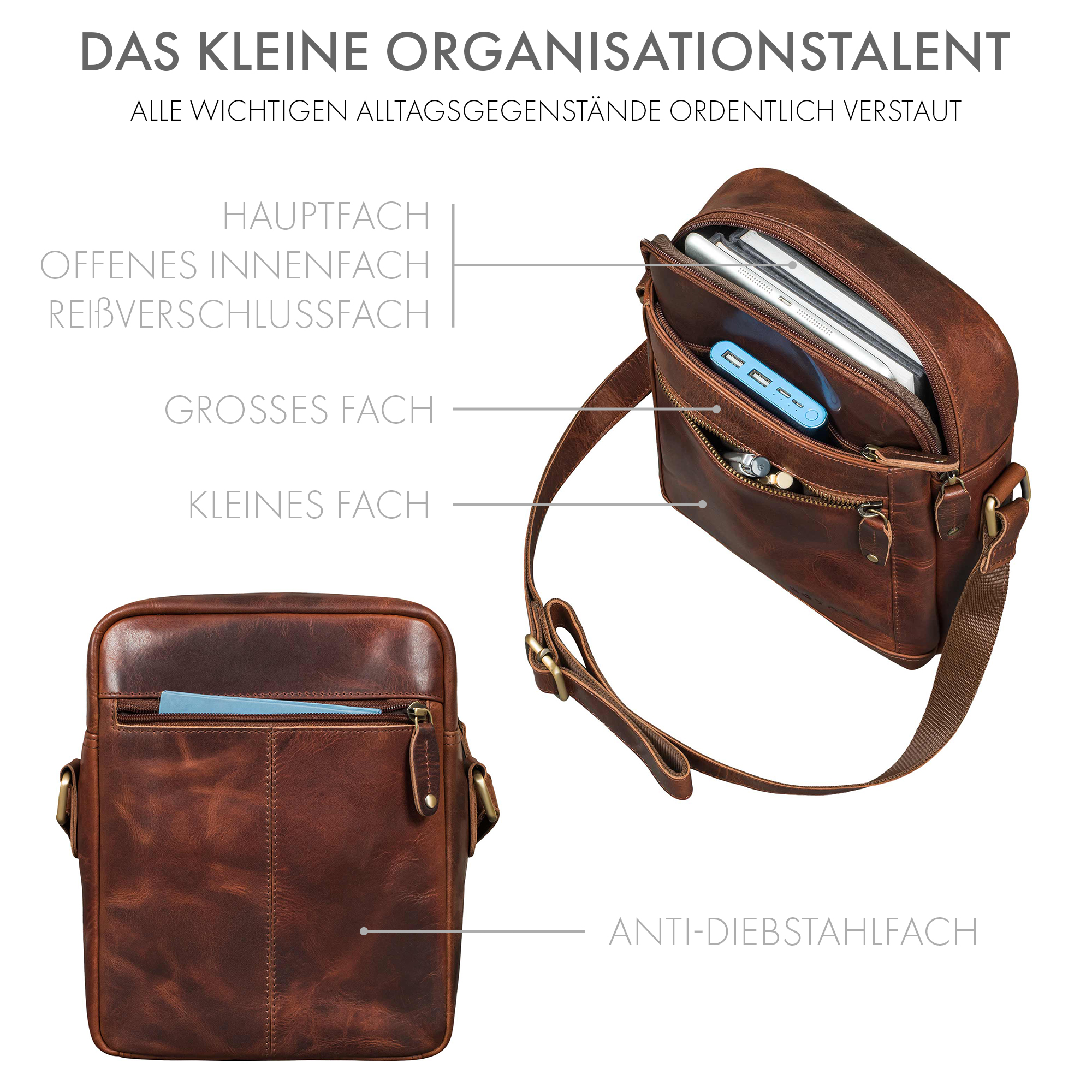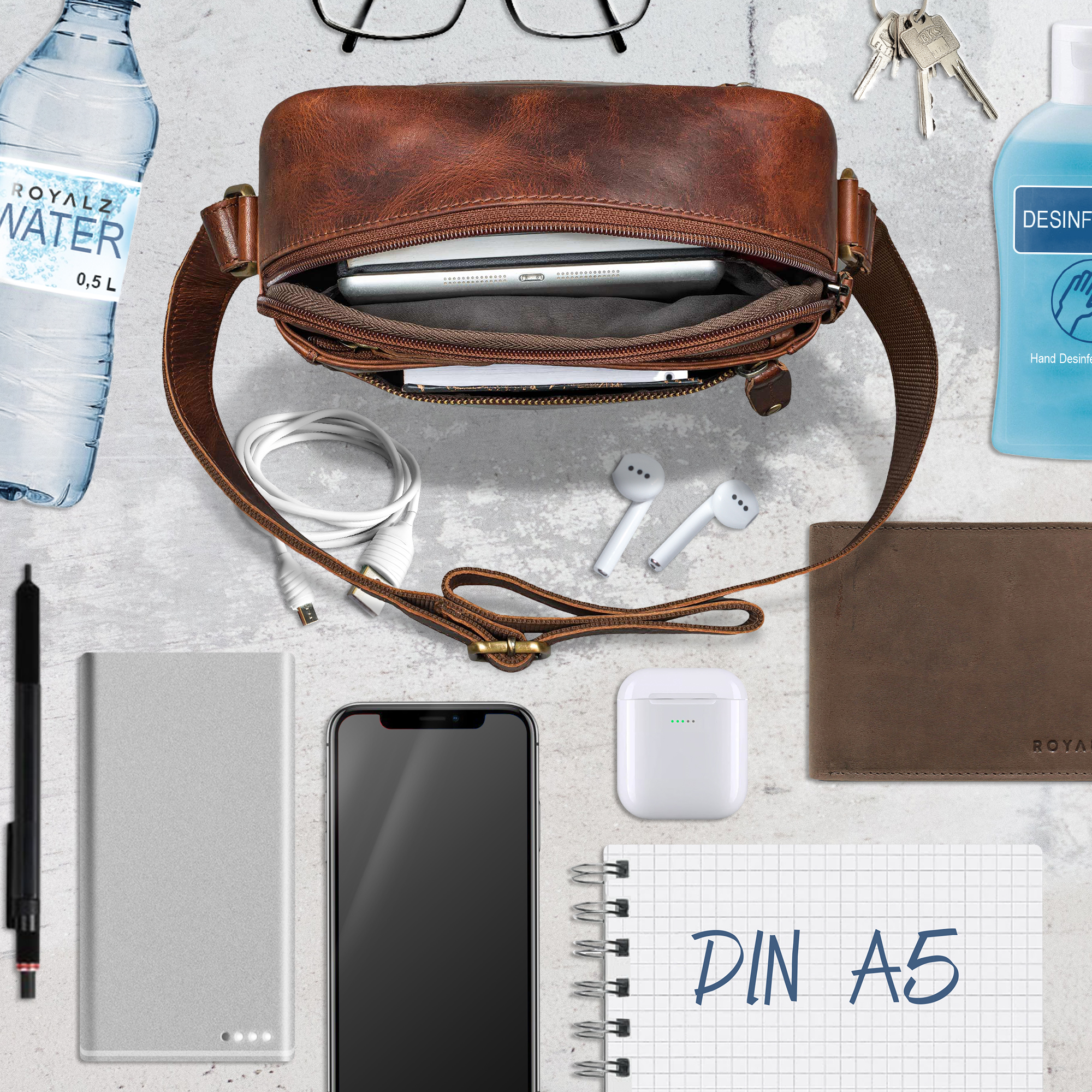 ROYALZ "Franklin" Smarte Echtleder Umhängetasche Herren klein - kompakte Männer Ledertasche viele Fächer - Mini Schultertasche aus Leder im modernen Vintage Look