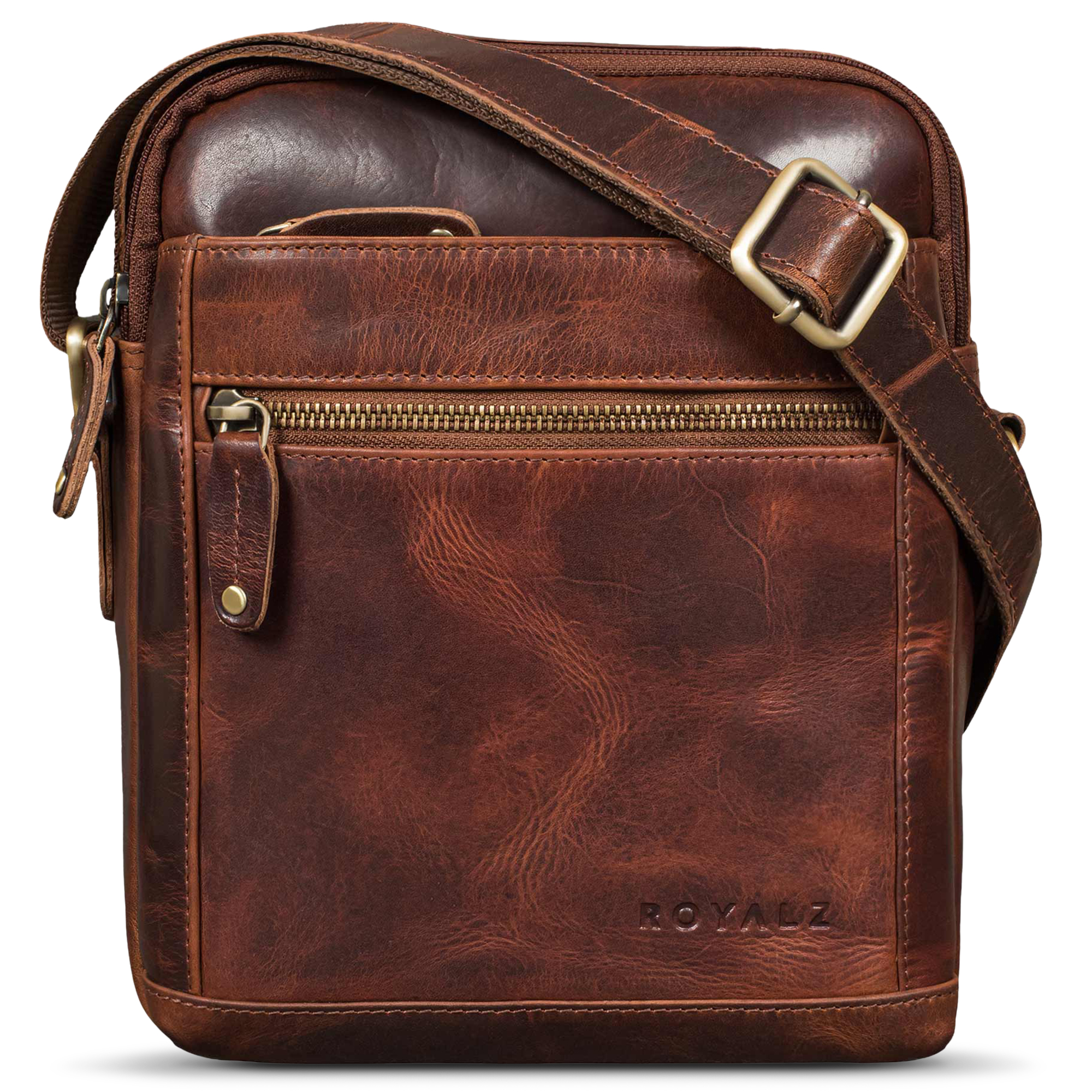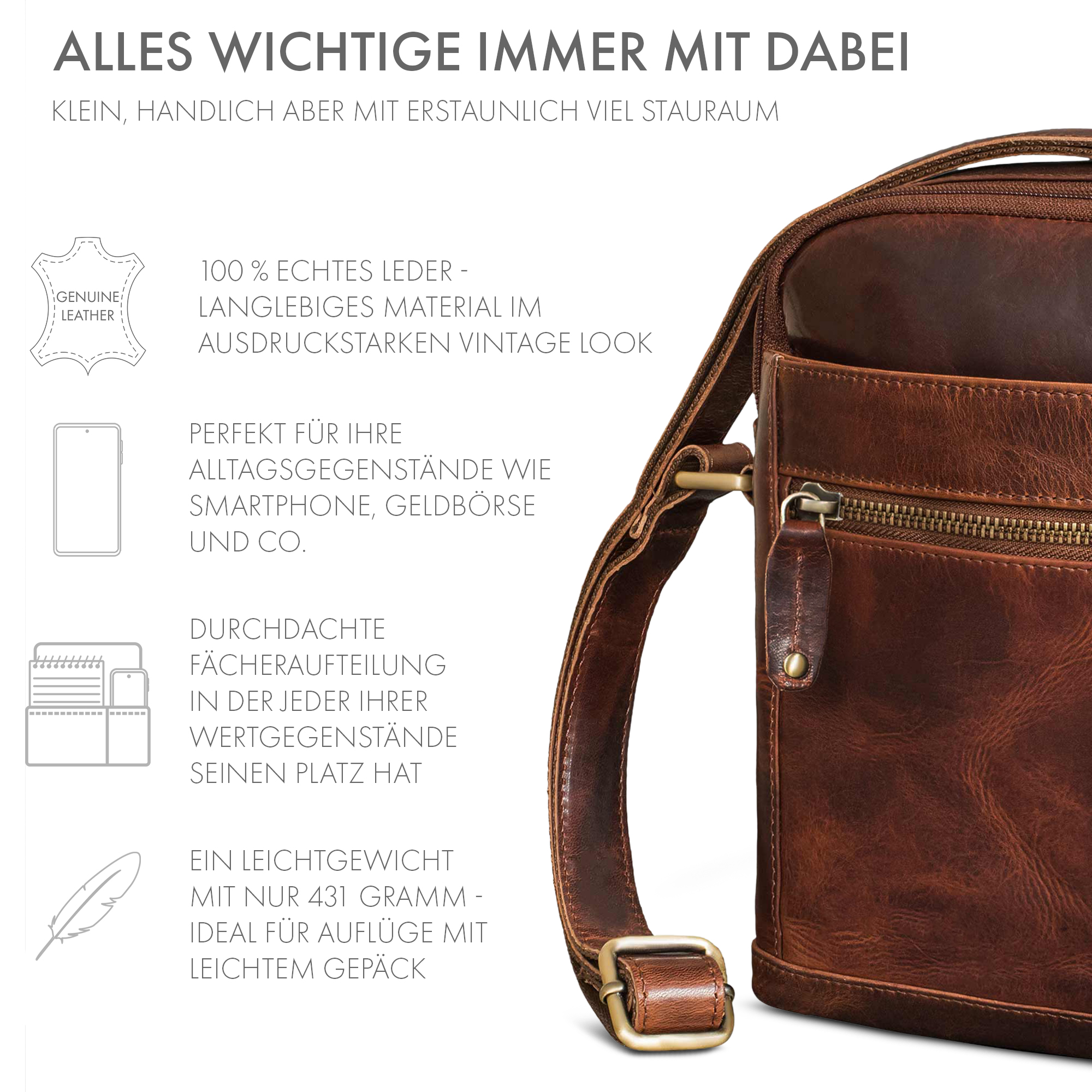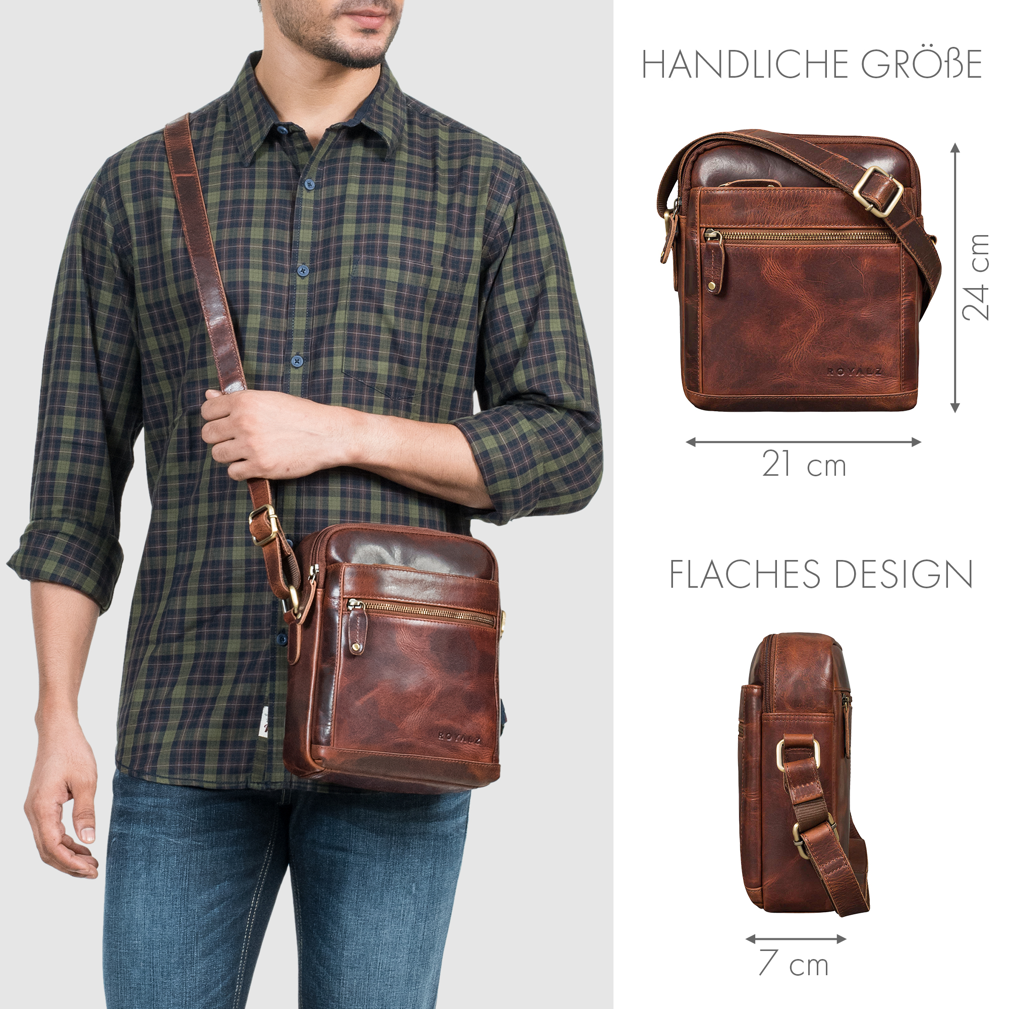ROYALZ "Franklin" Smarte Echtleder Umhängetasche Herren klein - kompakte Männer Ledertasche viele Fächer - Mini Schultertasche aus Leder im modernen Vintage Look