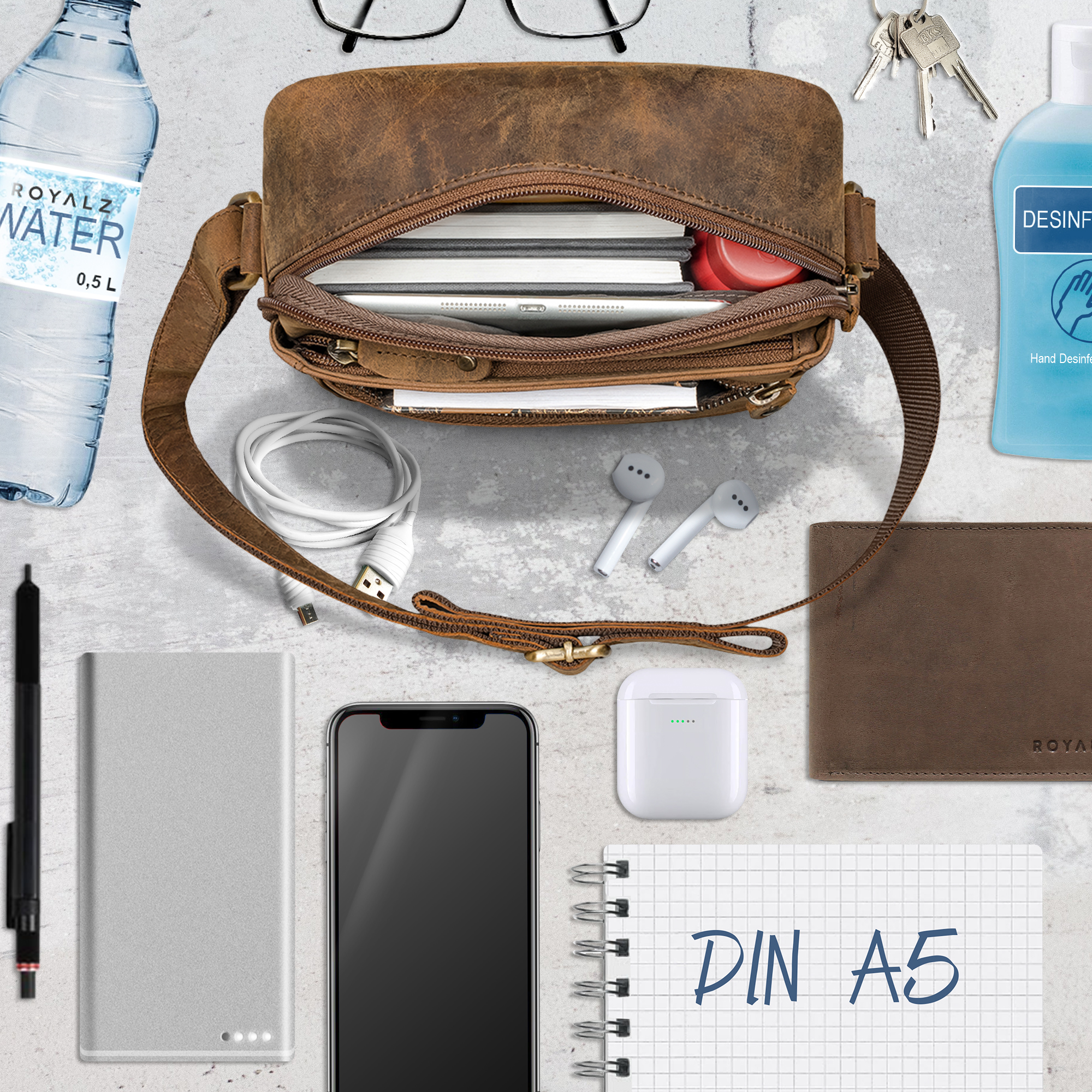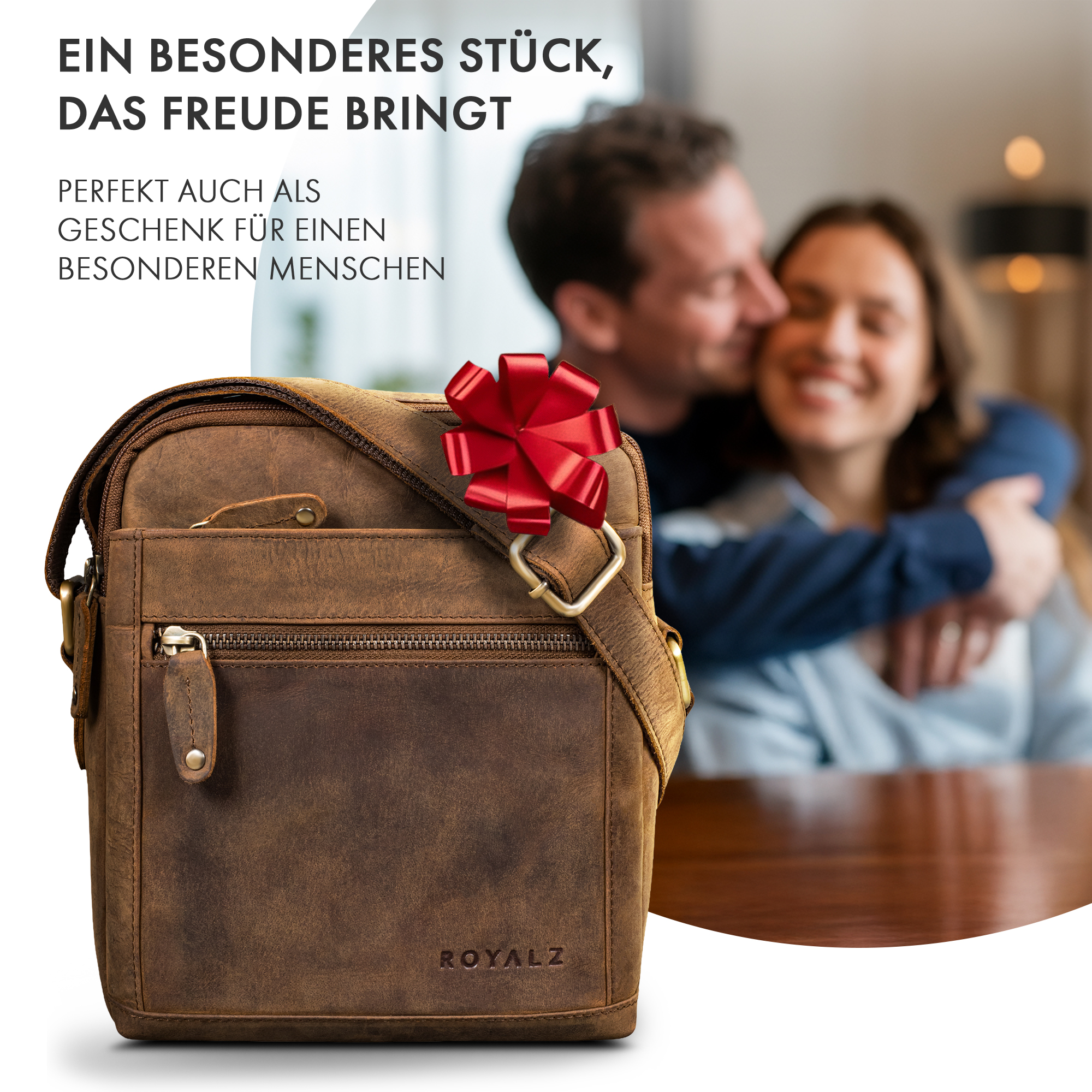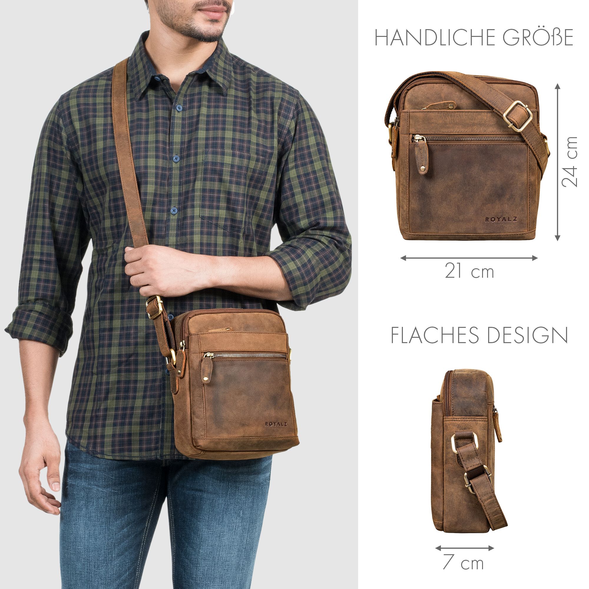 ROYALZ "Franklin" Smarte Echtleder Umhängetasche Herren klein - kompakte Männer Ledertasche viele Fächer - Mini Schultertasche aus Leder im modernen Vintage Look
