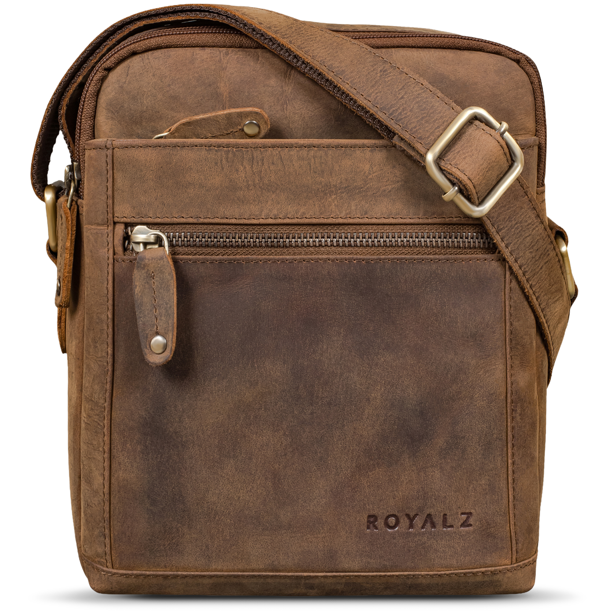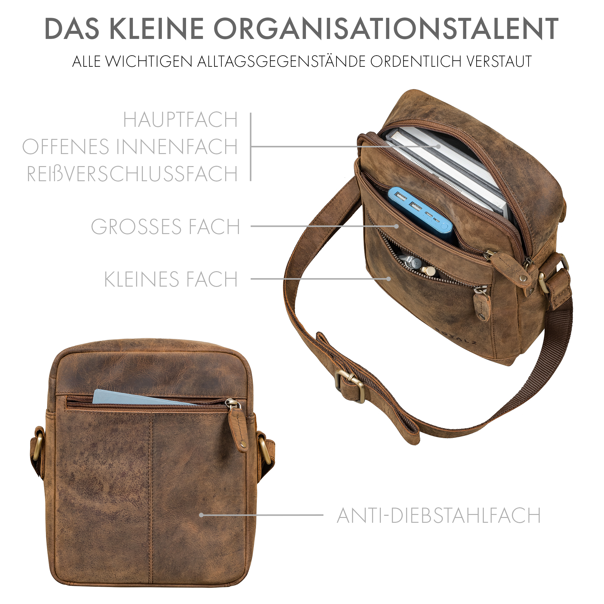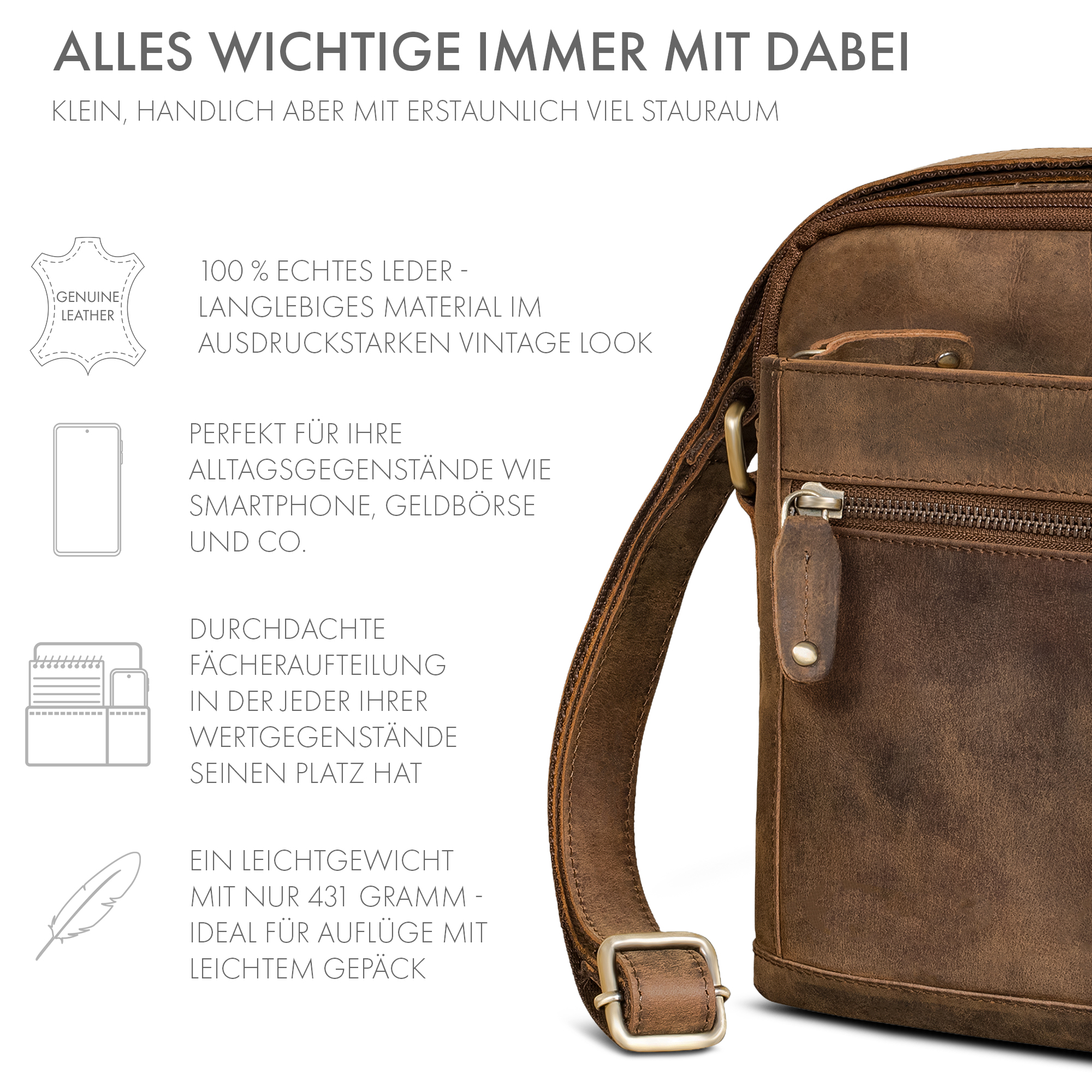 ROYALZ "Franklin" Smarte Echtleder Umhängetasche Herren klein - kompakte Männer Ledertasche viele Fächer - Mini Schultertasche aus Leder im modernen Vintage Look