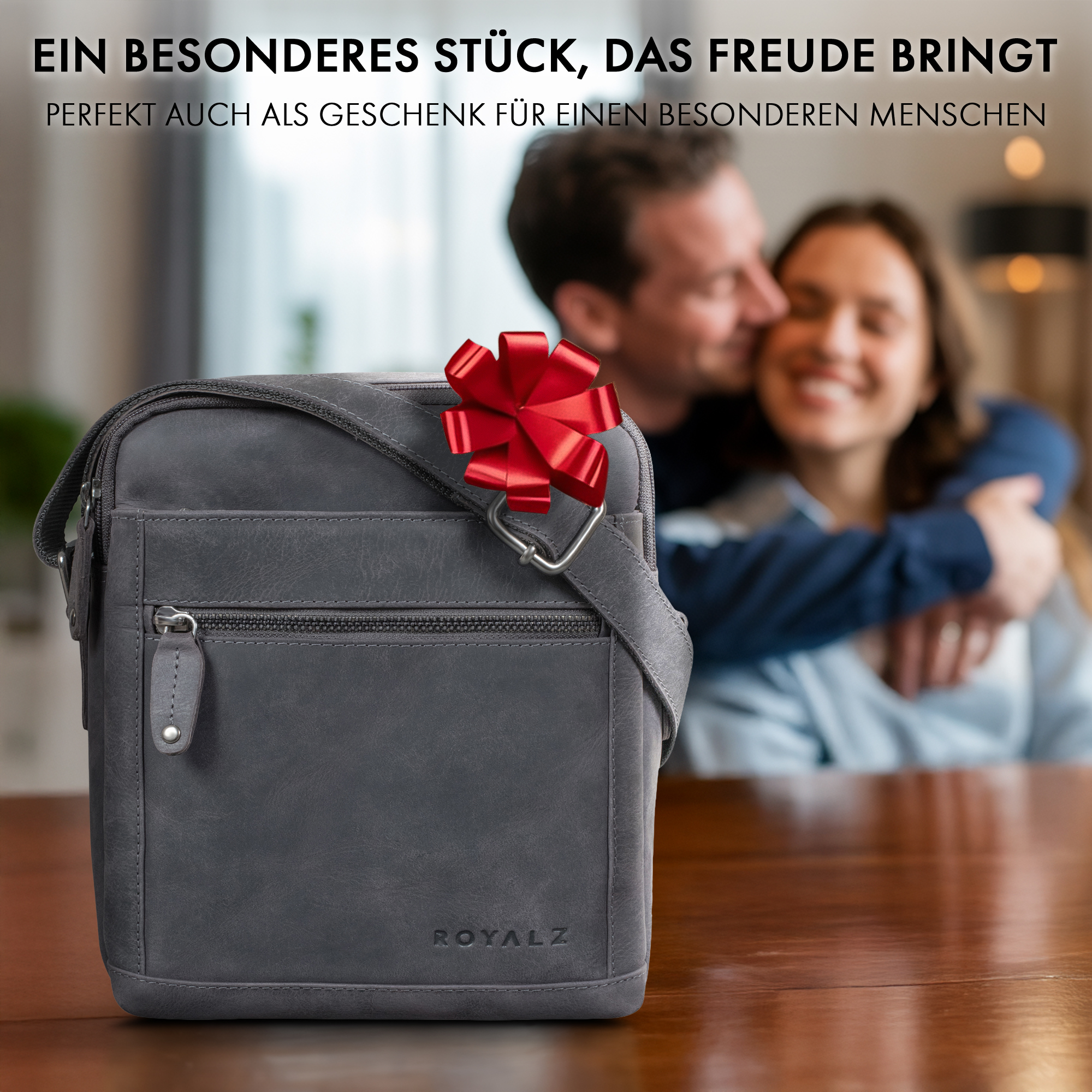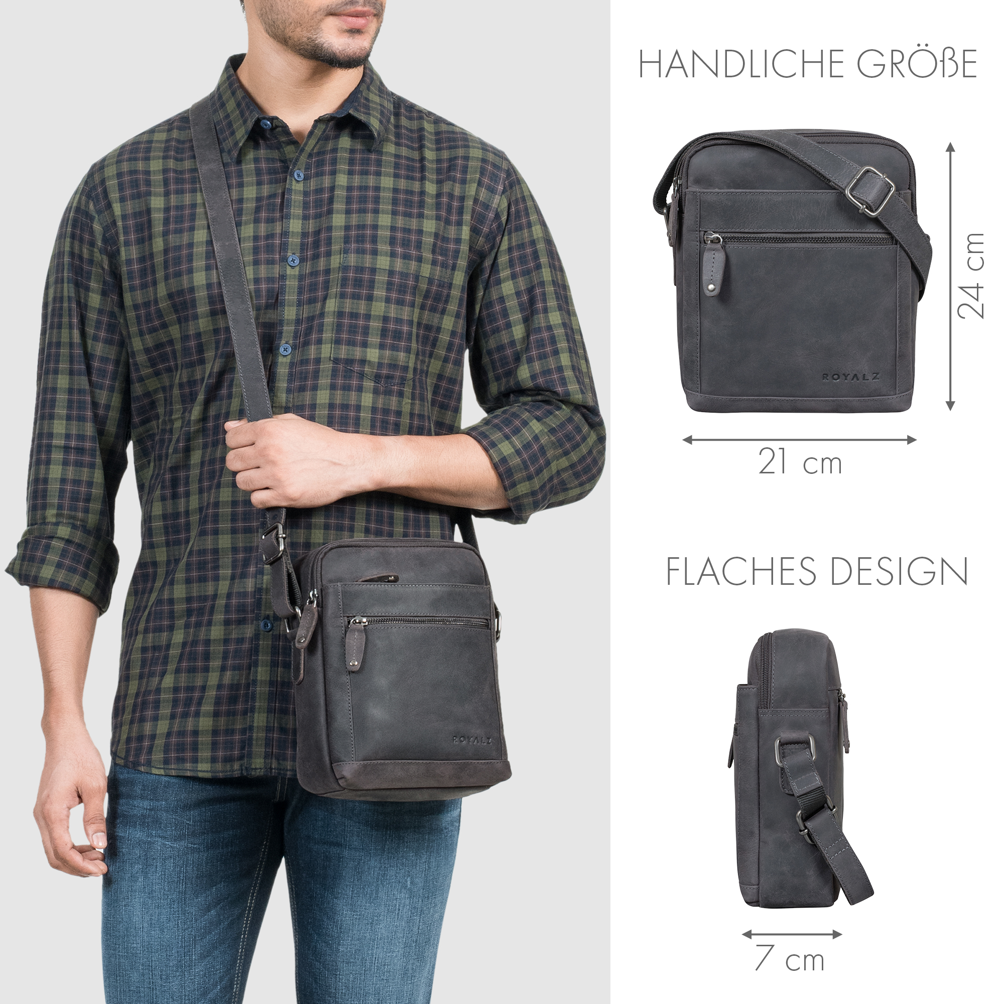 ROYALZ "Franklin" Smarte Echtleder Umhängetasche Herren klein - kompakte Männer Ledertasche viele Fächer - Schultertasche aus Leder im modernen Vintage Look