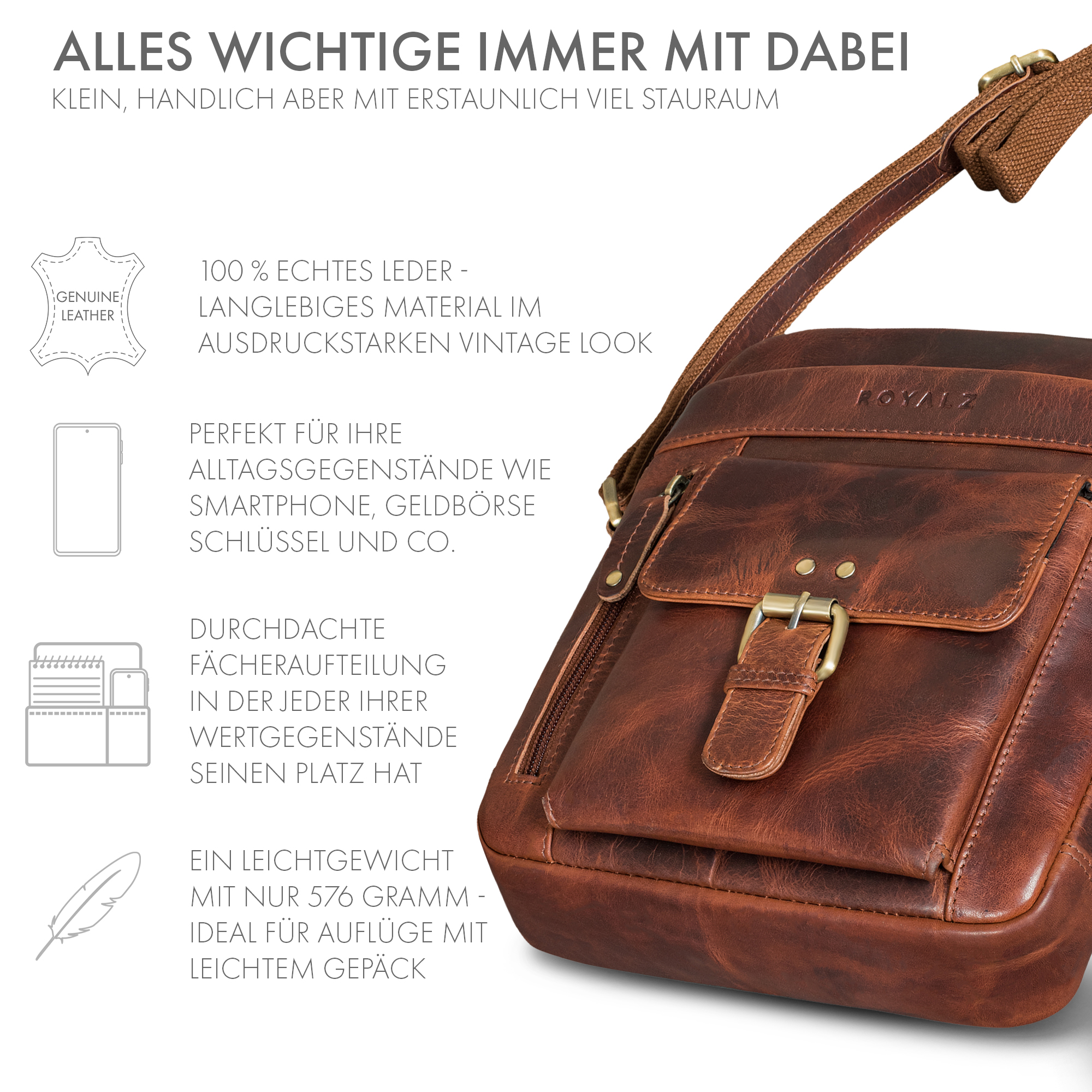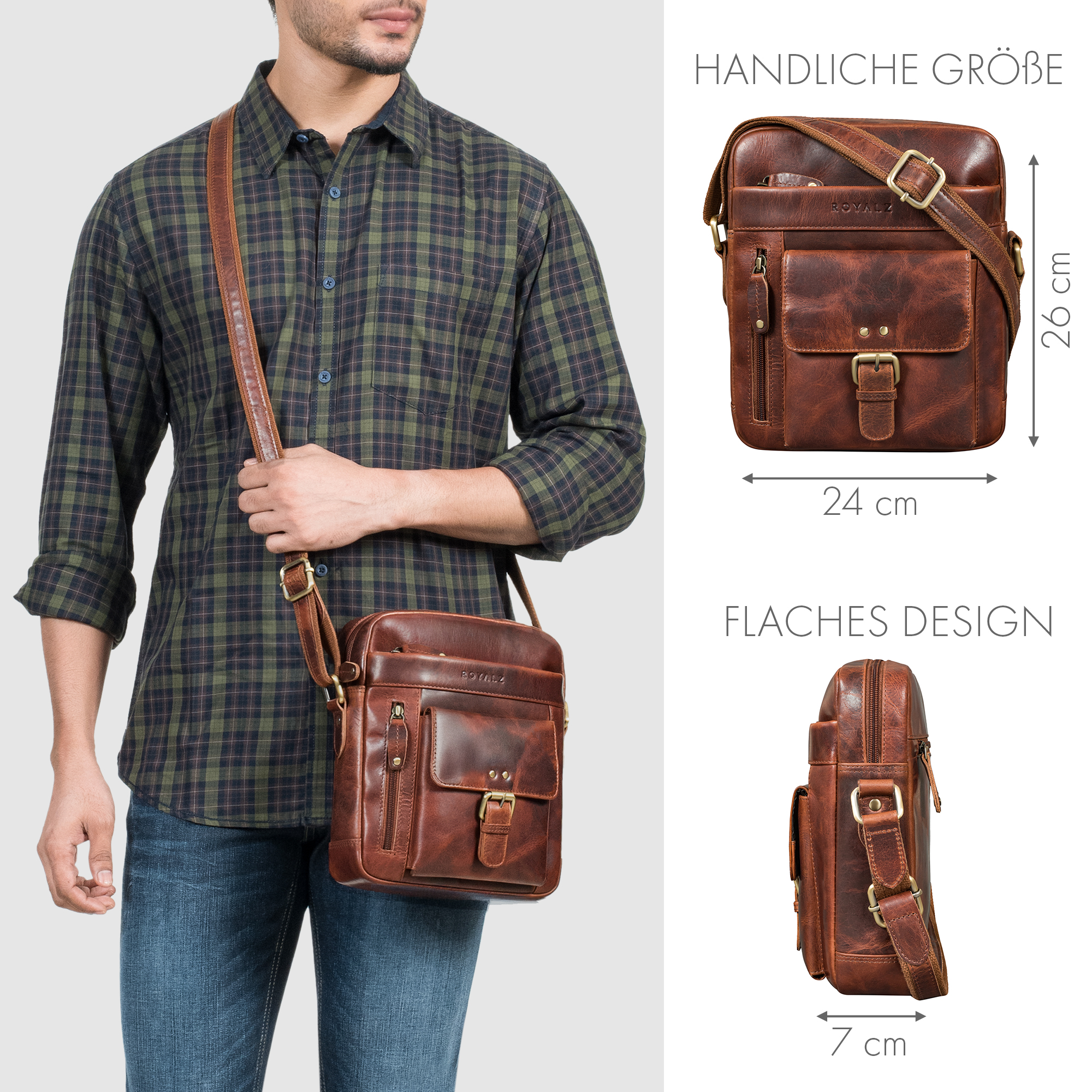 ROYALZ "Greyson" kompakte Herren Umhängetasche Leder - Echtleder Schultertasche Männer klein im modernen Vintage Look - smarte kleine Ledertasche Herren Alltag & Ausflüge