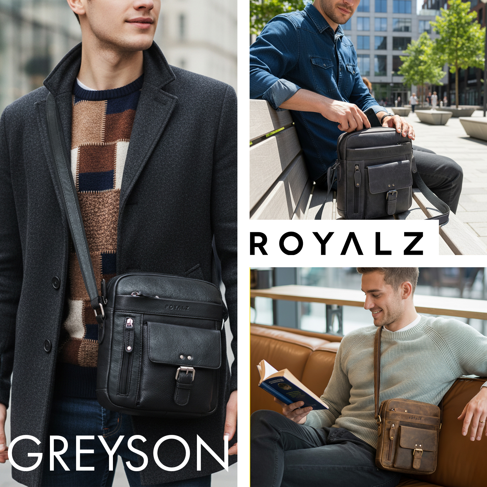 Die ROYALZ "Greyson" ist die perfekte kleine Ledertasche für Männer, die Stil, Robustheit und Praktikabilität verbinden möchten. Hergestellt aus echtem Rindsleder im Vintage-Look, ist sie robust, langlebig und gleichzeitig ein stilvolles Herren-Accessoire, das jedem Outfit das gewisse Etwas verleiht. Ob im Alltag oder bei spontanen Ausflügen – die kleine Schultertasche Herren ist immer ein treuer Begleiter.