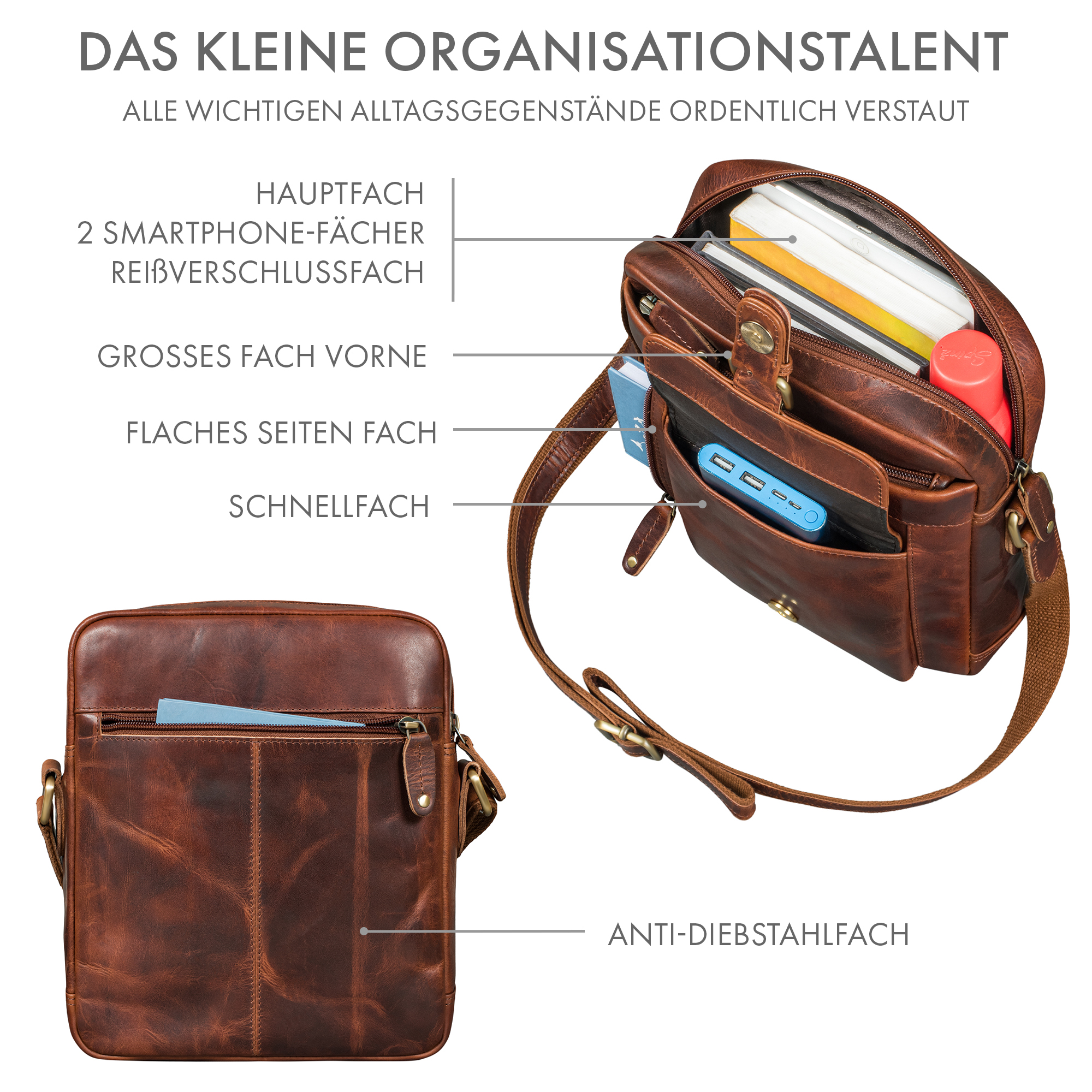 Handliche Ledertasche für Freizeit Alltag und Ausflüge – Herrentasche zum Umhängen aus Echtleder im modernen Vintage Look