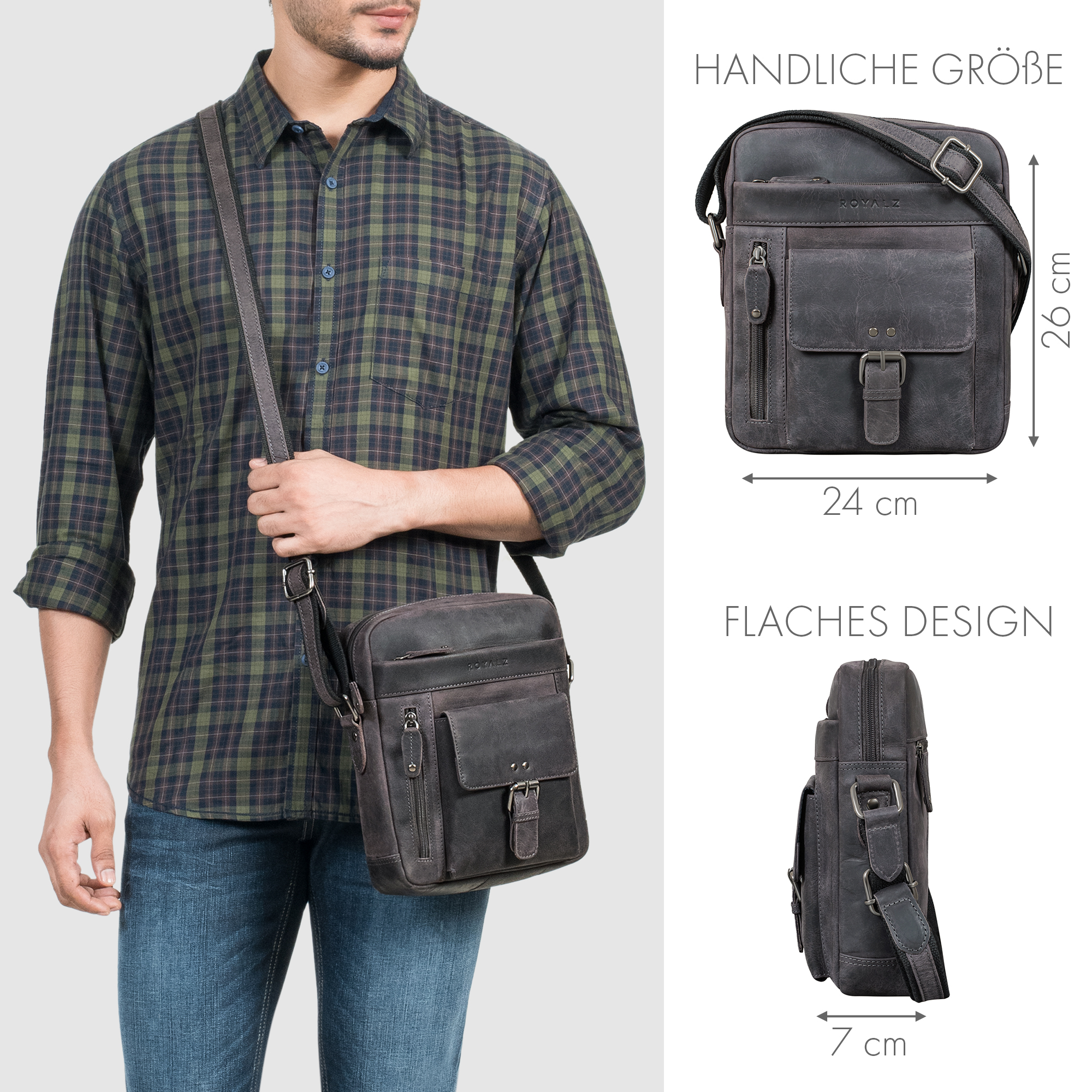 ROYALZ "Greyson" kompakte Herren Umhängetasche Leder - Echtleder Schultertasche Männer klein im modernen Vintage Look - smarte kleine Ledertasche Herren Alltag & Ausflüge