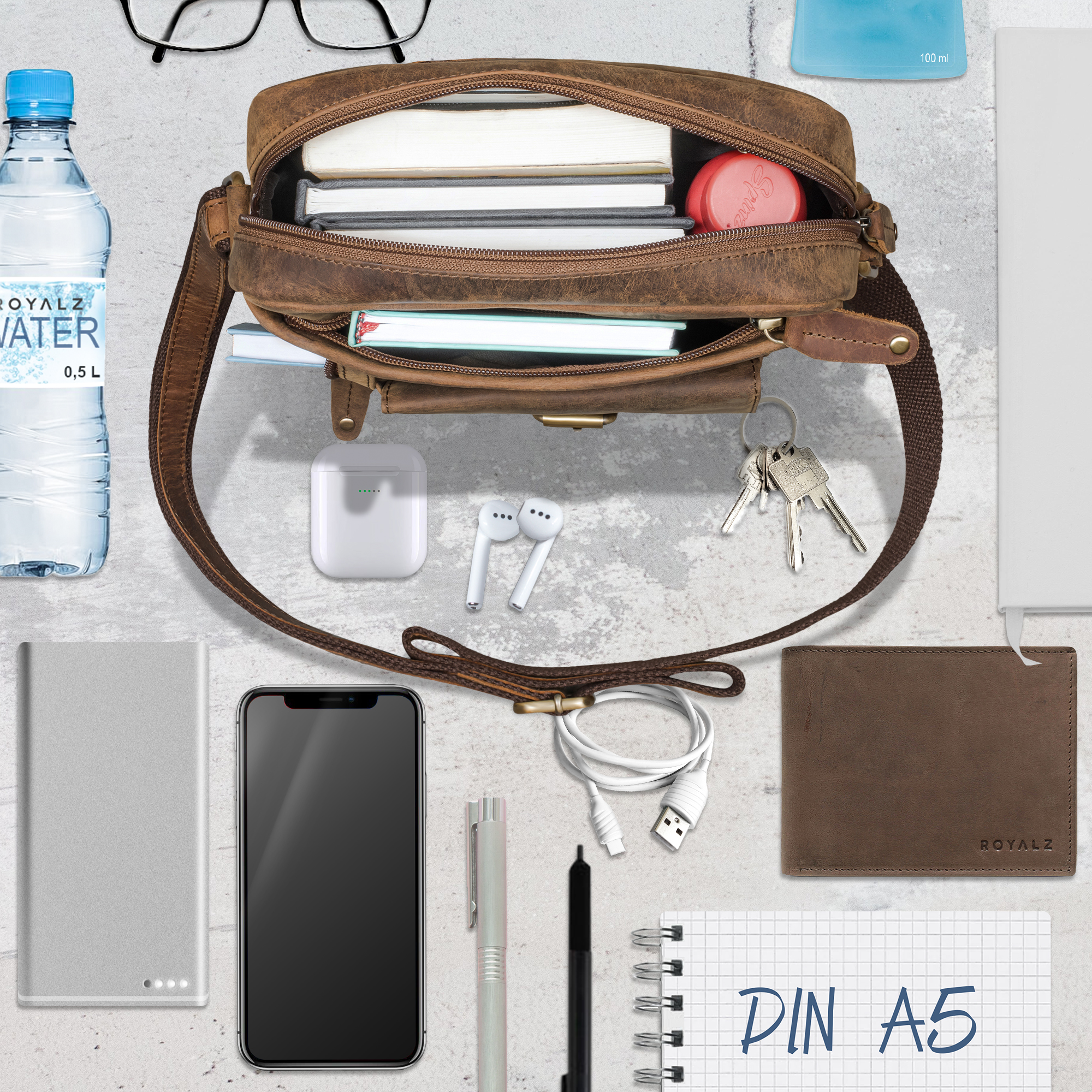 ROYALZ "Greyson" kompakte Herren Umhängetasche Leder - Echtleder Schultertasche Männer klein im modernen Vintage Look - smarte kleine Ledertasche Herren Alltag & Ausflüge