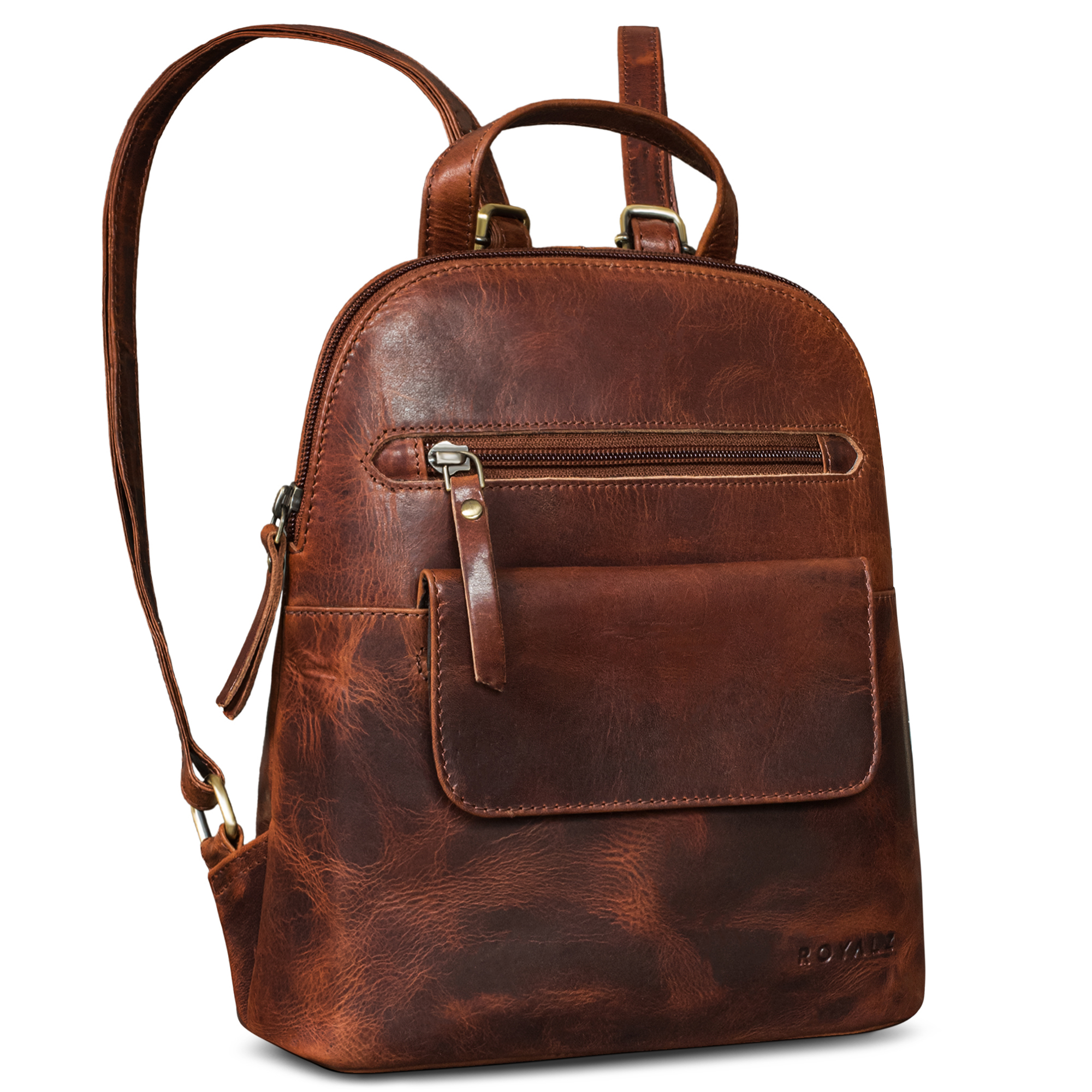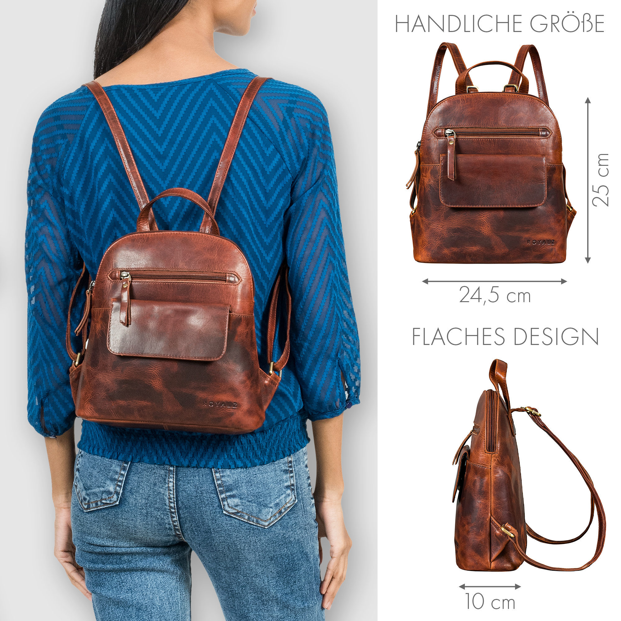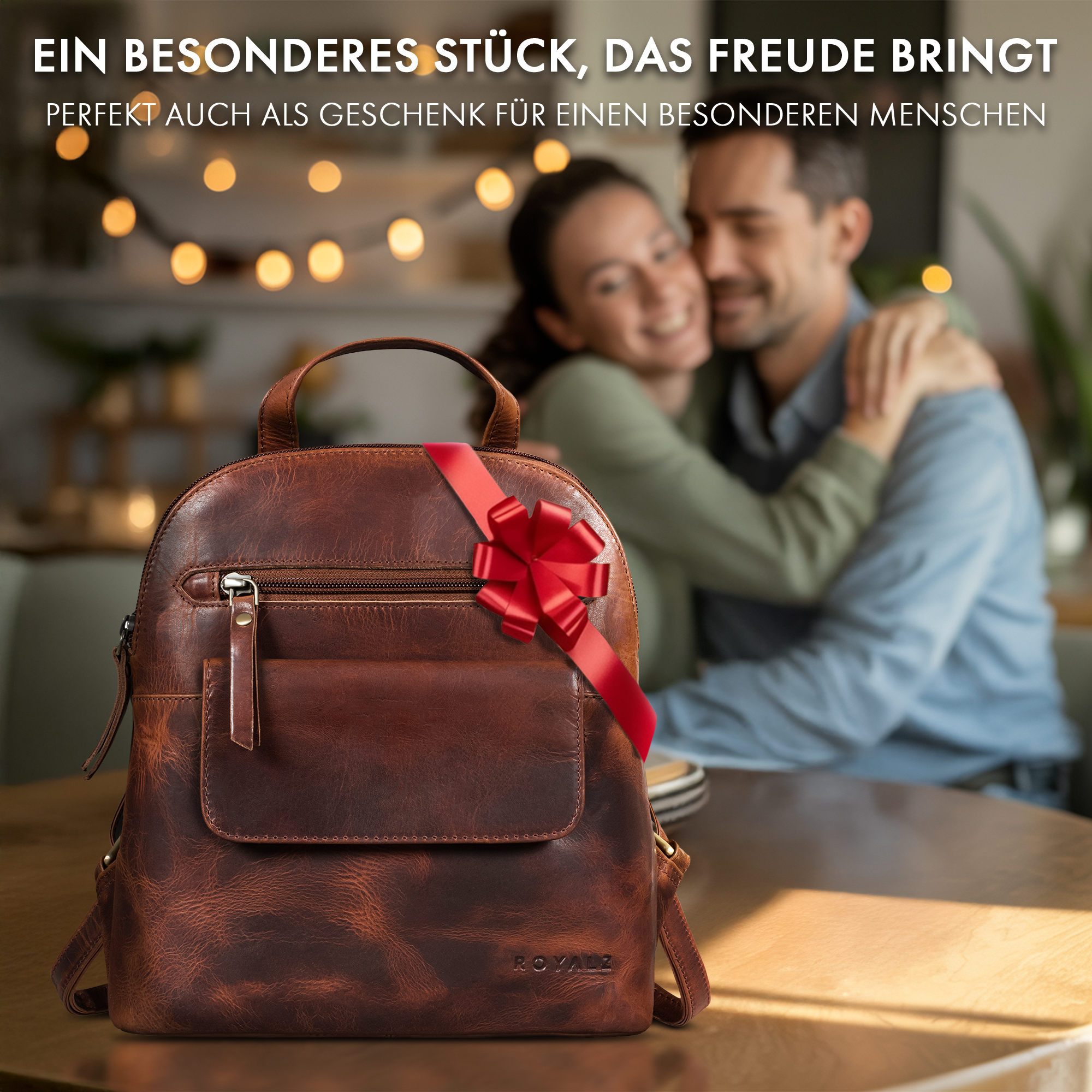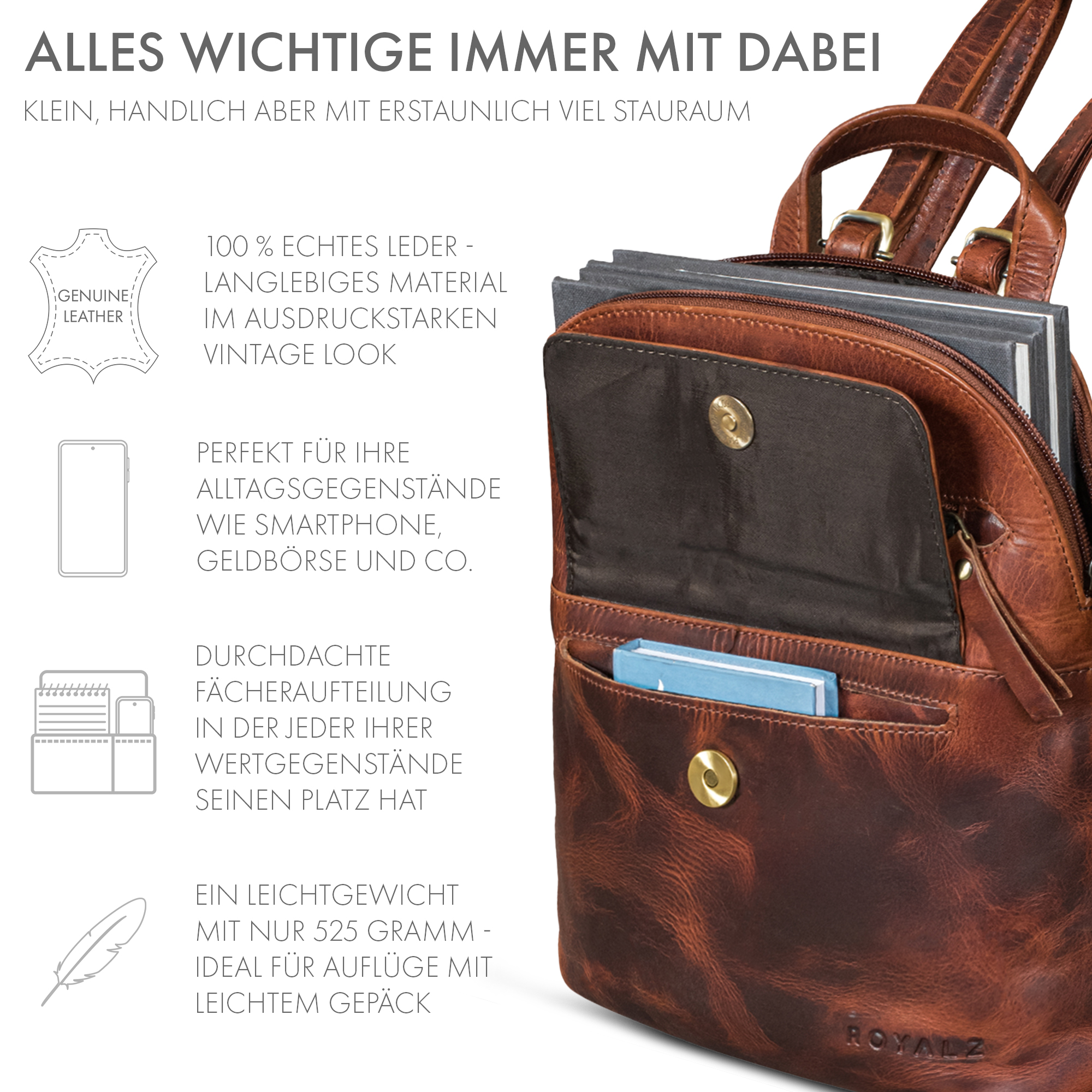 ROYALZ "Providence" Echtleder Rucksack Damen klein elegant - Rucksackhandtaschen Leder für Frauen - Moderner Mini Lederrucksack im Vintage Look Cityrucksack