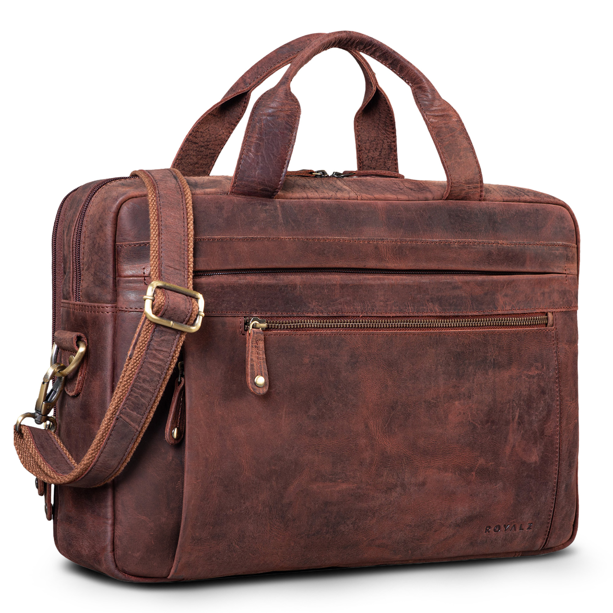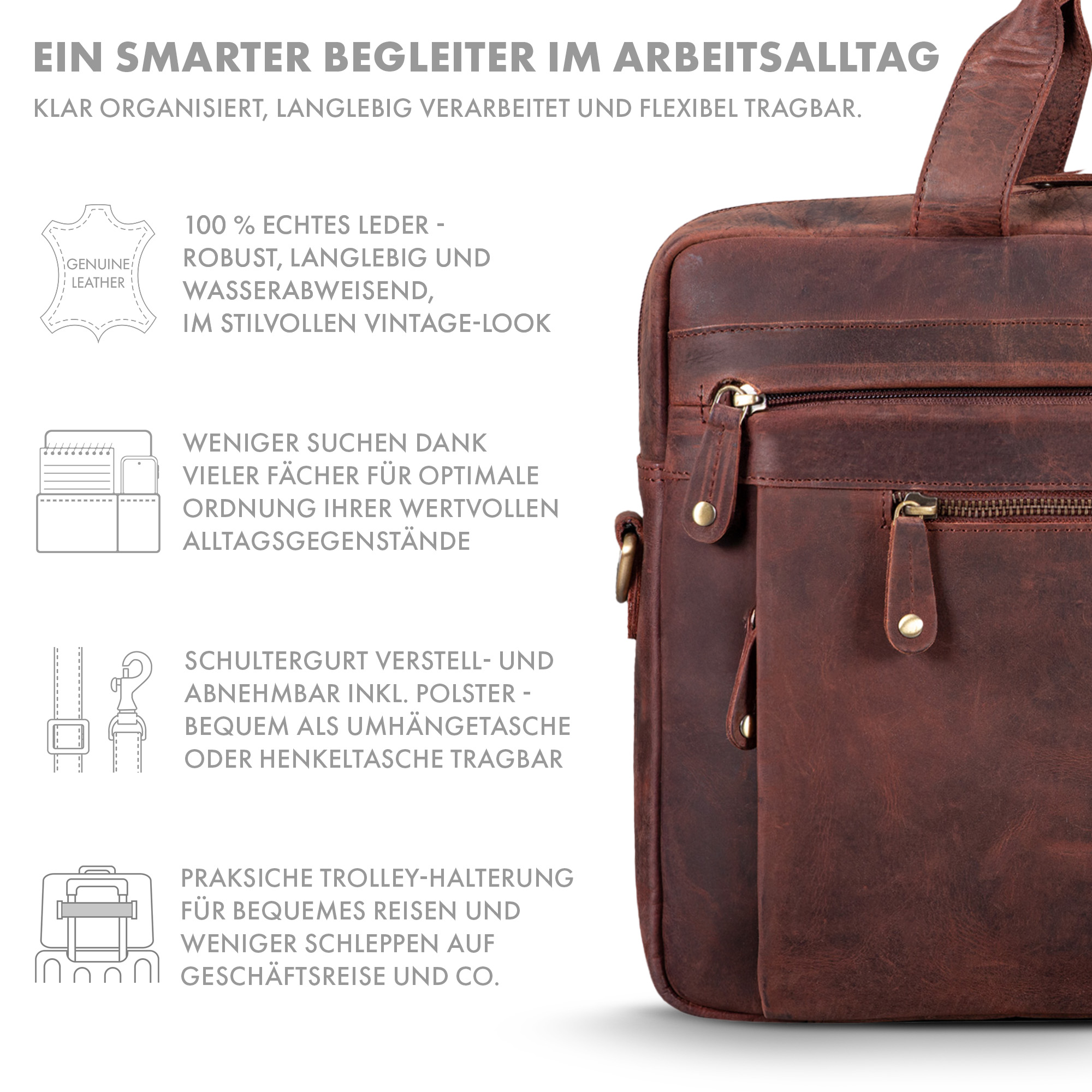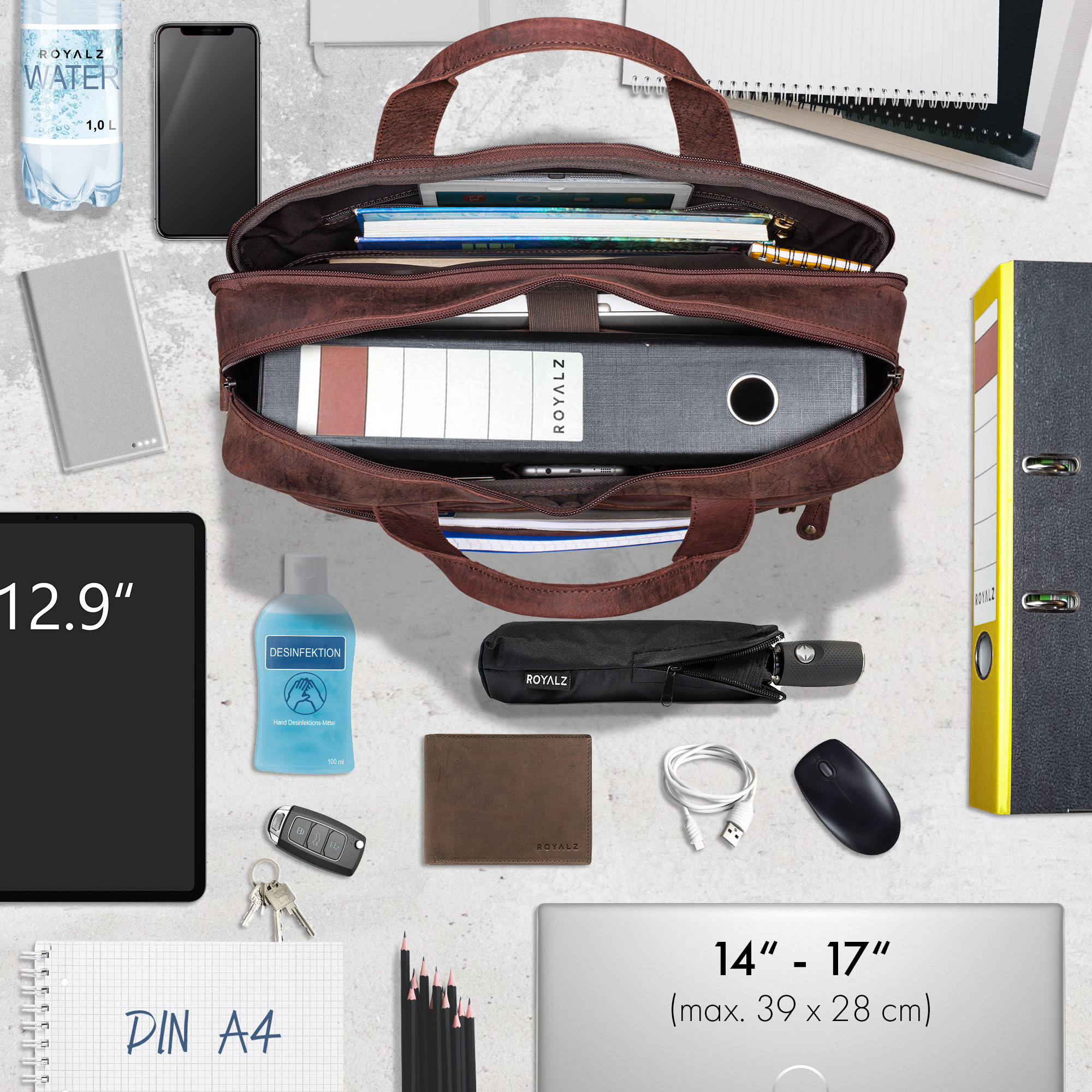 ROYALZ "Boston" Aktentasche Herren Leder Business - Laptoptasche 14 - 17 Zoll aus Echtleder Umhängetasche Männertasche für Arbeit Alltag Reisen - Vintage Design Ledertasche