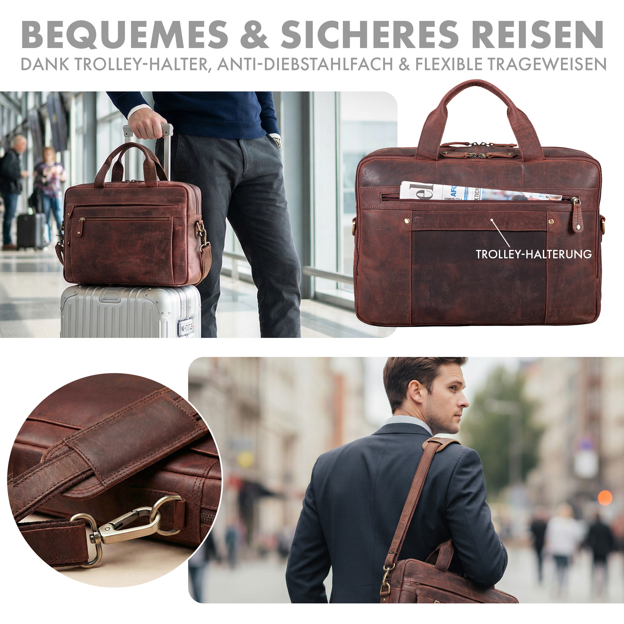 - Praktische Ledertasche für Alltag & Business - Vielseitige Leder Umhängetasche Herren groß – ideal für Arbeit, Büro, Uni und Reisen. Hochwertiger Vintage Look, gepflegt im Alltag und dezent zu jedem Outfit. inkl. Trolleyhalter ideal für Reisen.