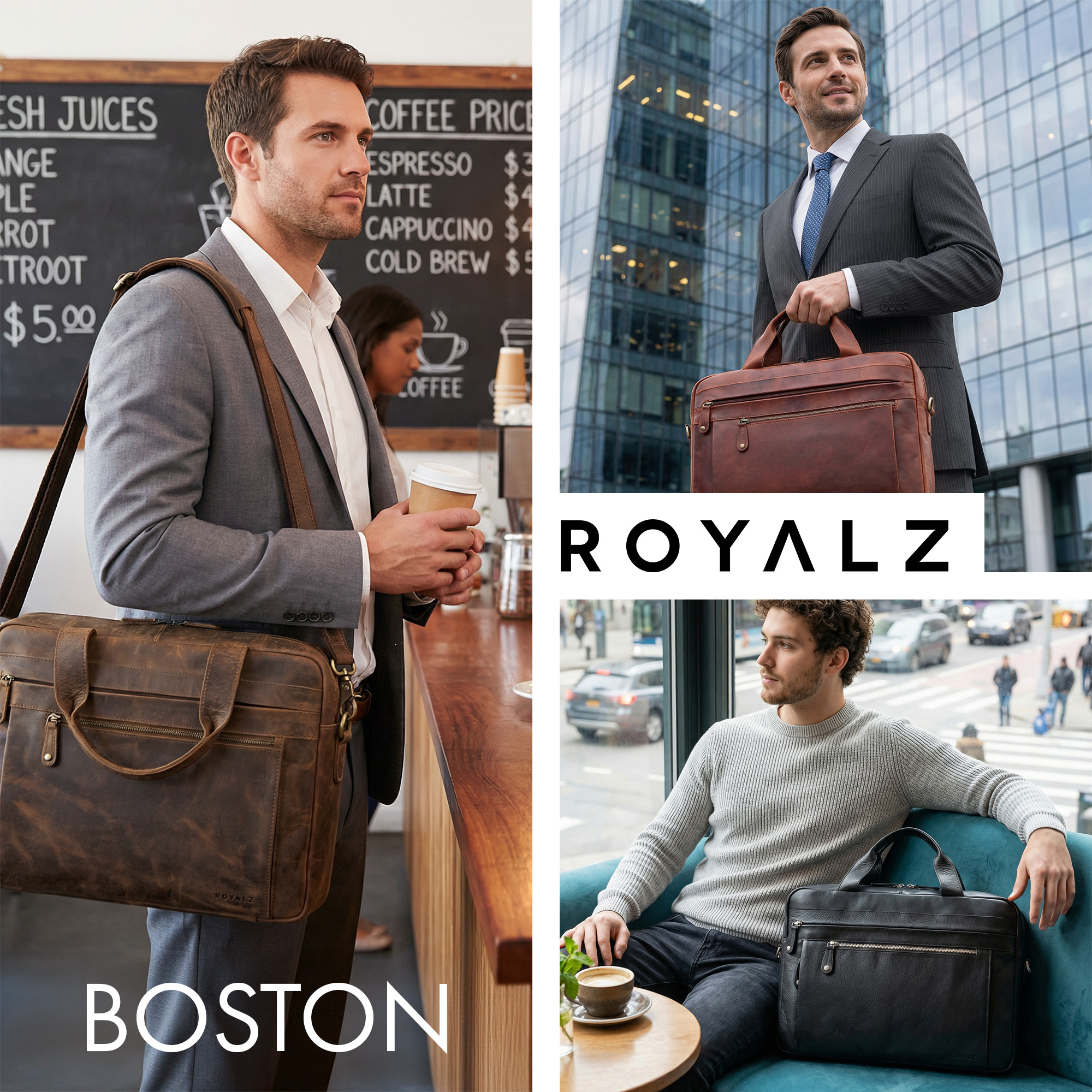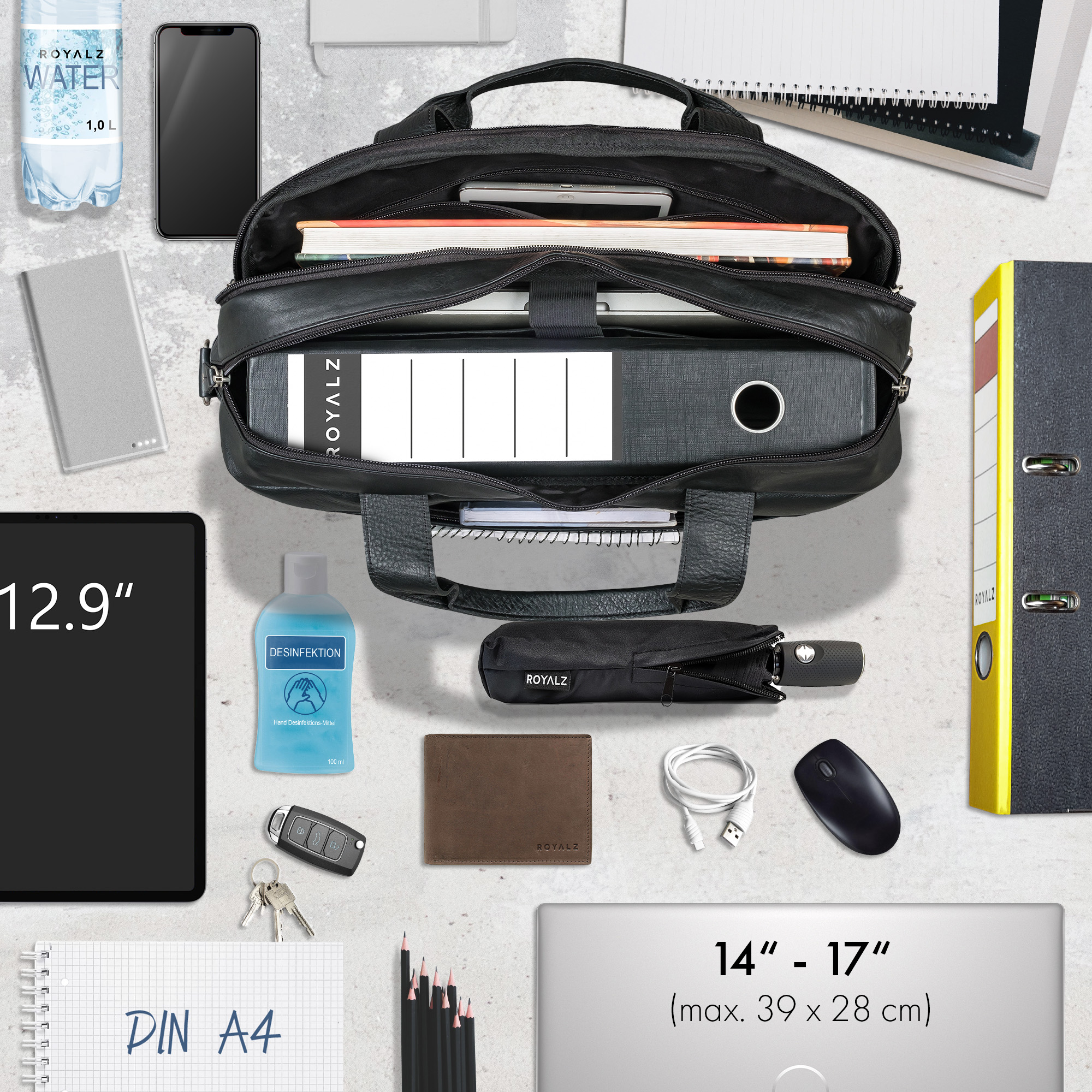 - Lieferumfang 1 × ROYALZ „Boston“ Leder Schultertasche Herren