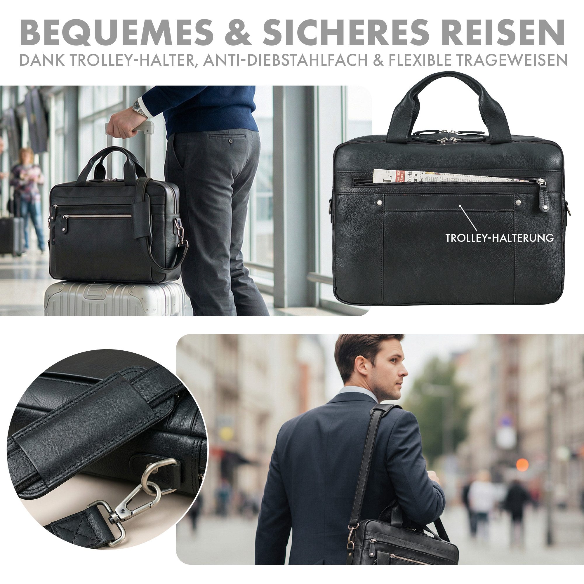 - Praktische Ledertasche für Alltag & Business - Vielseitige Leder Umhängetasche Herren groß – ideal für Arbeit, Büro, Uni und Reisen. Hochwertiger Vintage Look, gepflegt im Alltag und dezent zu jedem Outfit. inkl. Trolleyhalter ideal für Reisen.