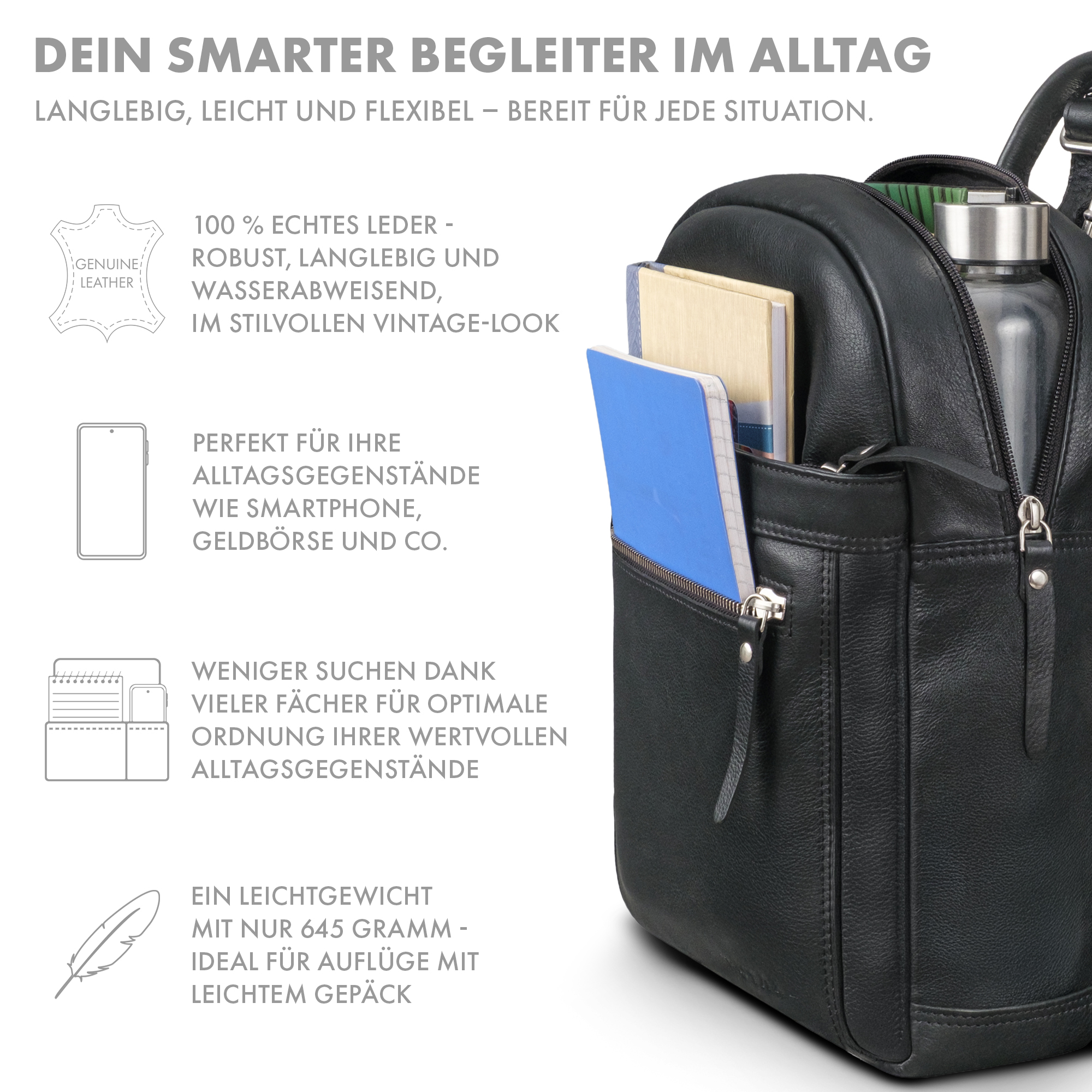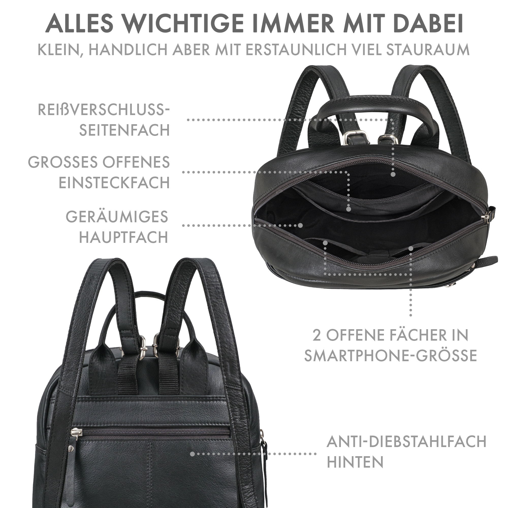 - KLEINER RUCKSACK DAMEN LEDER - Moderner Cityrucksack aus Echtleder im Vintage Stil. Ideal für Frauen, die einen kompakten Leder Rucksack mit Stil suchen.