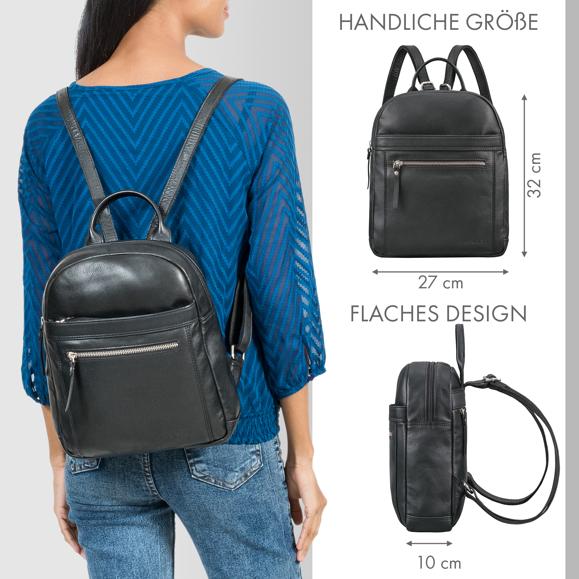 - DETAILS AUF EINEN BLICK - Maße: ca. 27 x 10 x 32 cm, Gewicht: 645 g, Material: Echtleder, Modell: "Delaware", Lieferumfang 1x ROYALZ "Delaware" Tagesrucksack Damen klein.