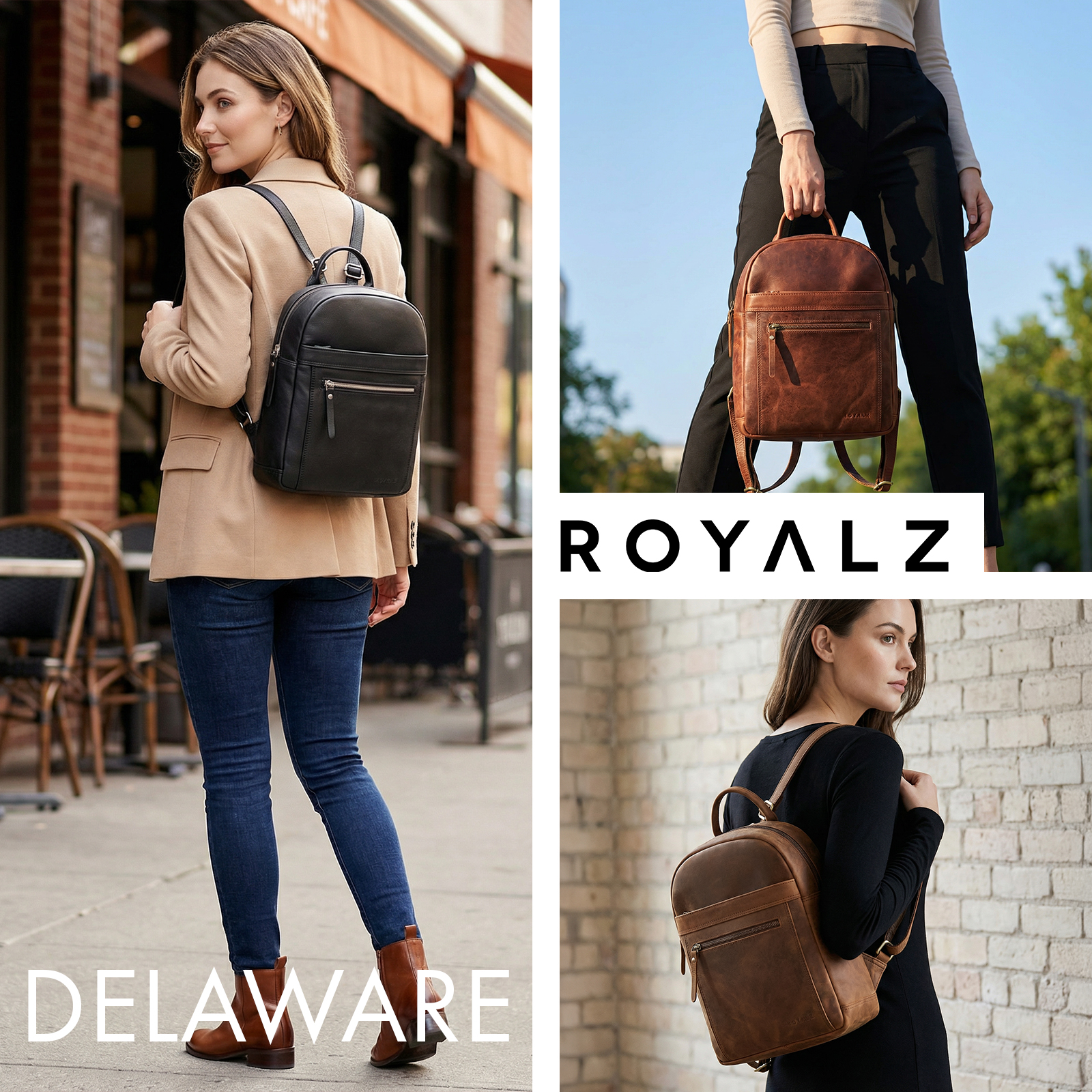 1 x ROYALZ Delaware City Rucksack Damen klein aus Echtleder