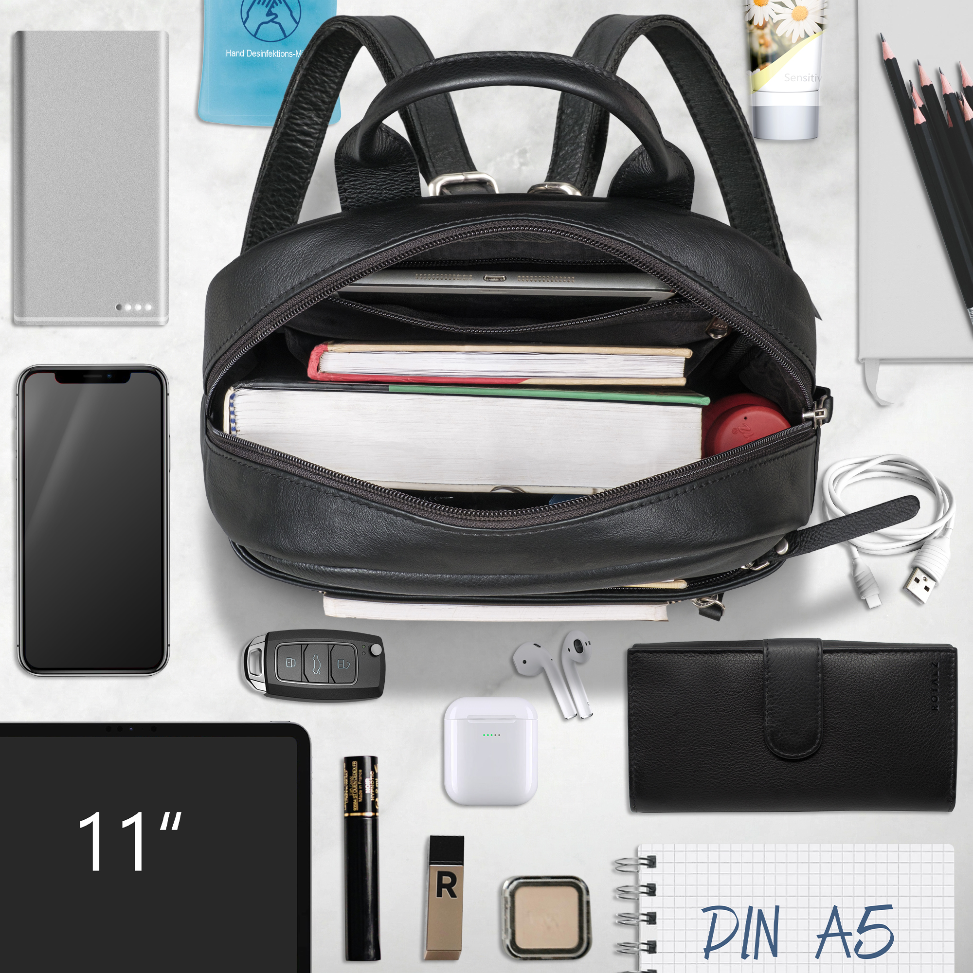 ROYALZ "Delaware" moderner kleiner Rucksack Damen Leder - Cityrucksack Vintage Handtaschenrucksack Echtleder - Tagesrucksack Mini Backpack für Alltag & Freizeit DIN A5