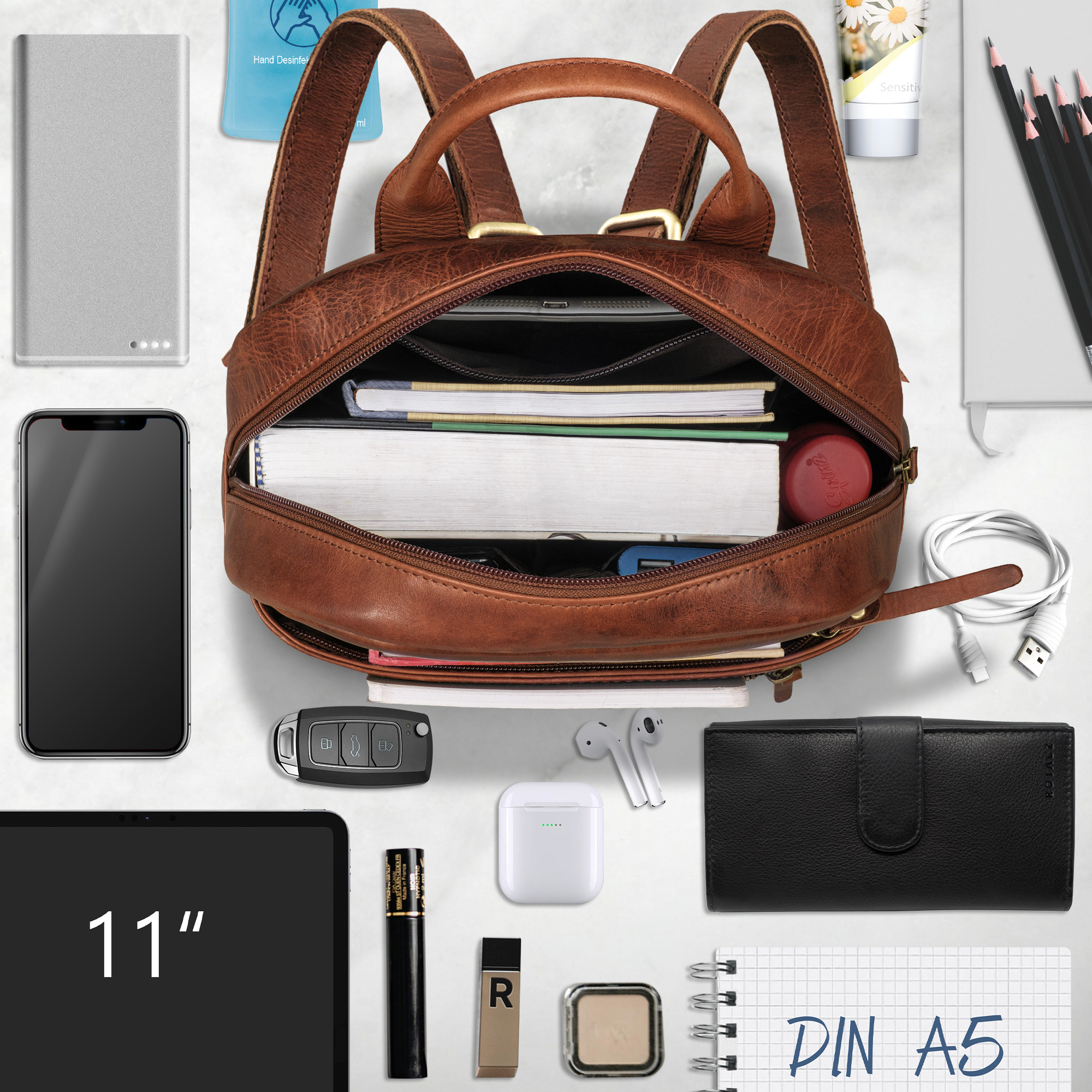 ROYALZ "Delaware" moderner kleiner Rucksack Damen Leder - Cityrucksack Vintage Handtaschenrucksack Echtleder - Tagesrucksack Mini Backpack für Alltag & Freizeit DIN A5