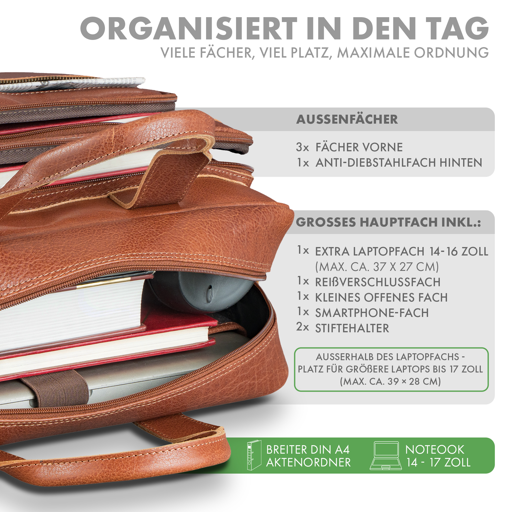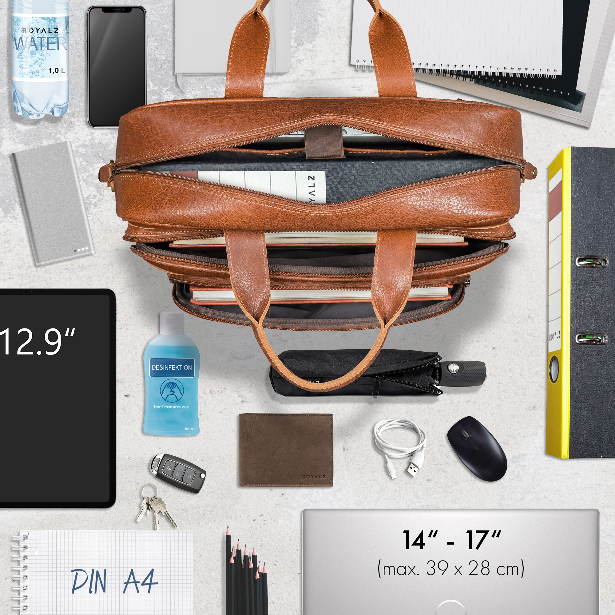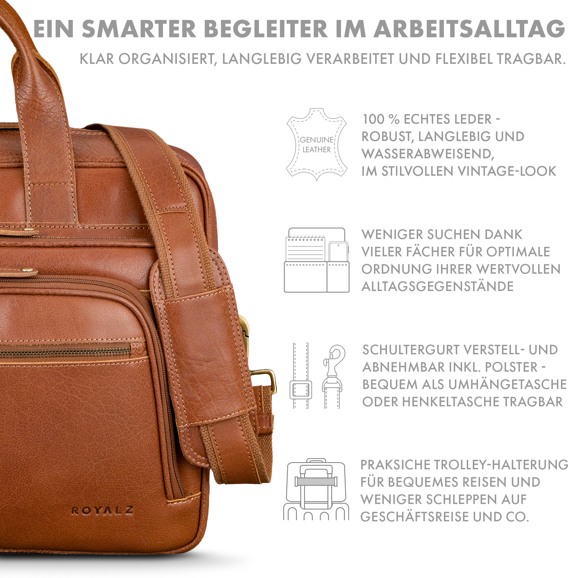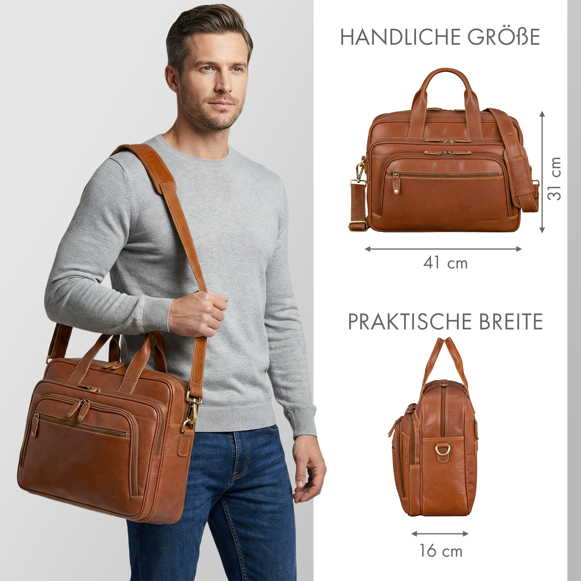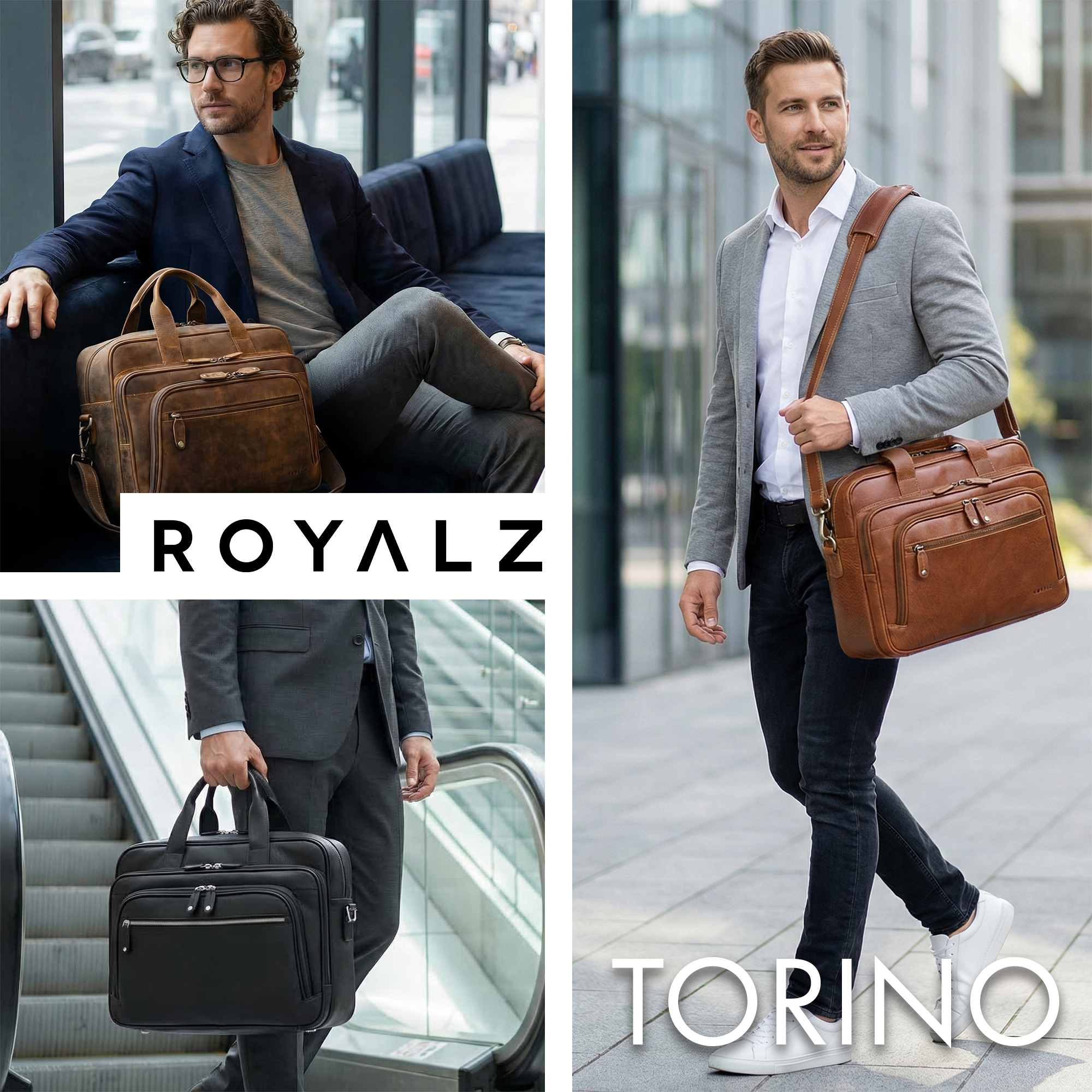 ROYALZ "Torino" große Aktentasche Herren Leder Business – Laptoptasche 14–17 Zoll Echtleder Umhängetasche groß für Büro Arbeit Reisen – Vintage Ledertasche Arbeitstasche