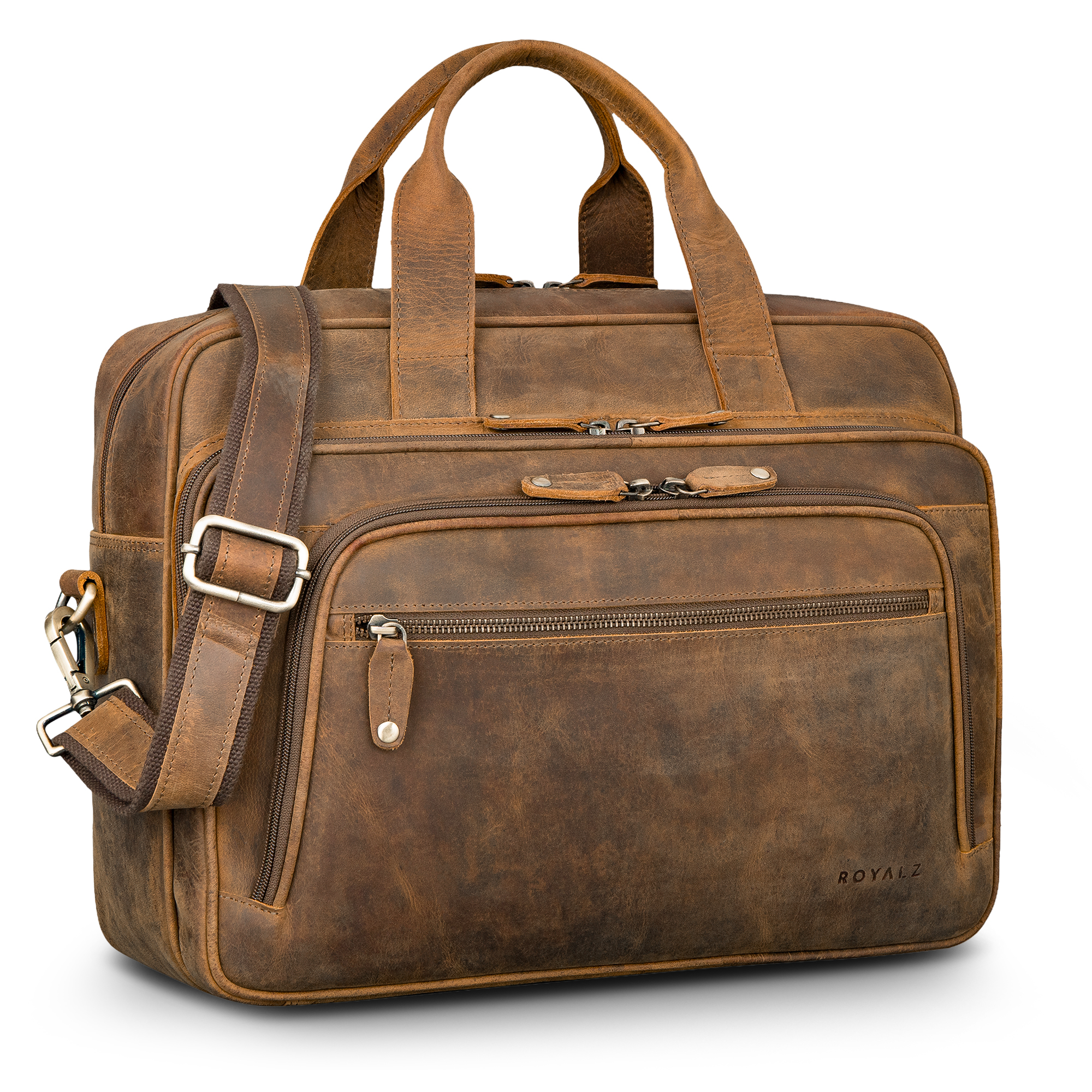 ROYALZ "Torino" Leder Aktentasche Herren groß zum Umhängen - Laptoptasche 15.6 Zoll Business Uni Freizeit als Vintage Ledertasche Reisetasche mit Trolleyhalter Bürotasche