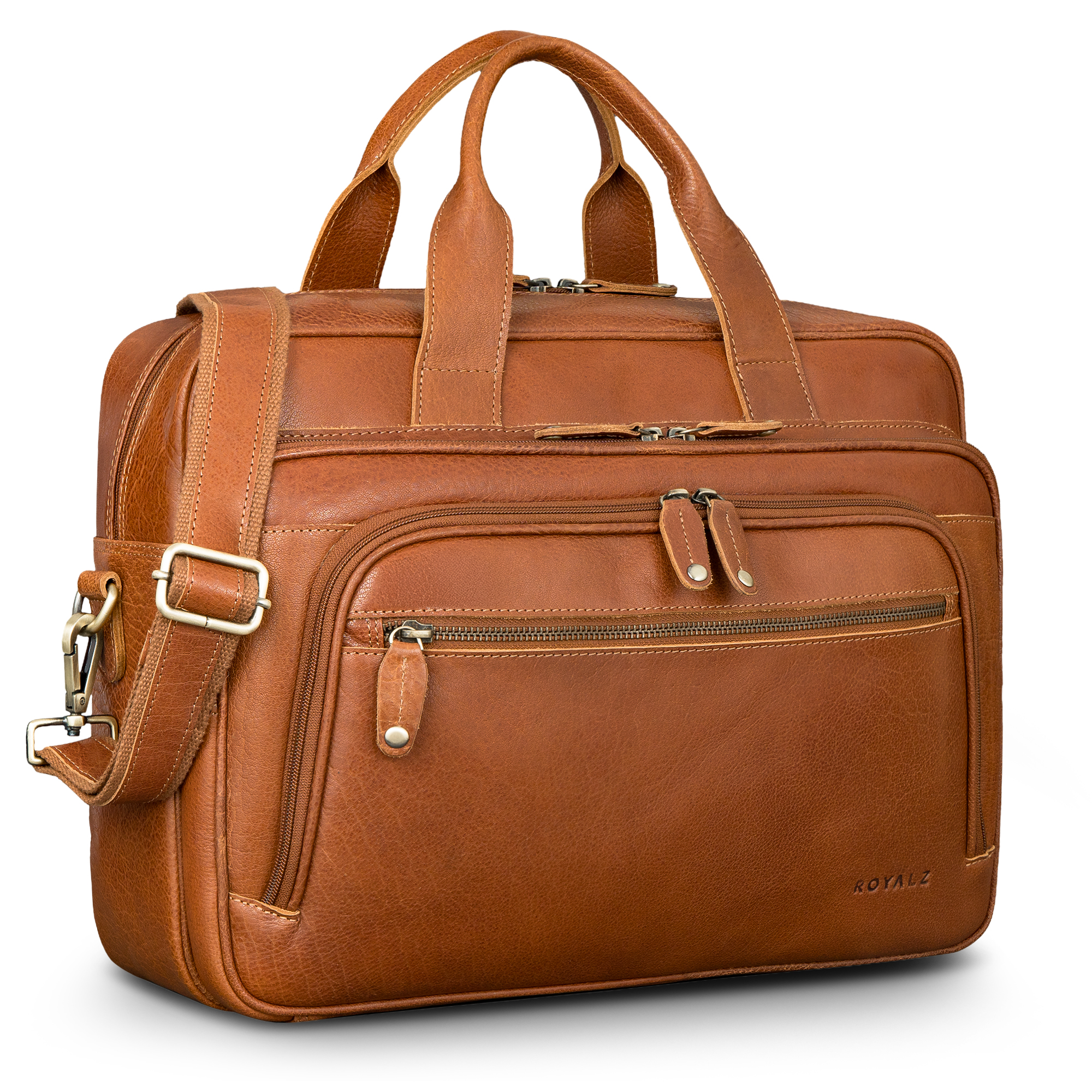 ROYALZ "Torino" Leder Aktentasche Herren groß zum Umhängen - Laptoptasche 15.6 Zoll Business Uni Freizeit als Vintage Ledertasche Reisetasche mit Trolleyhalter Bürotasche