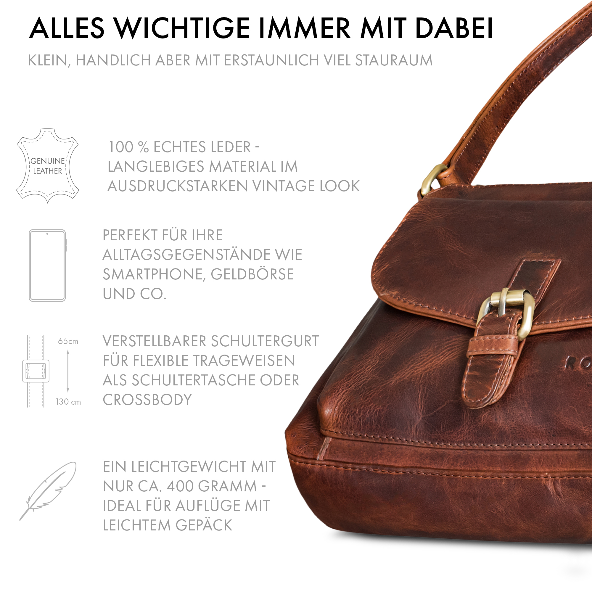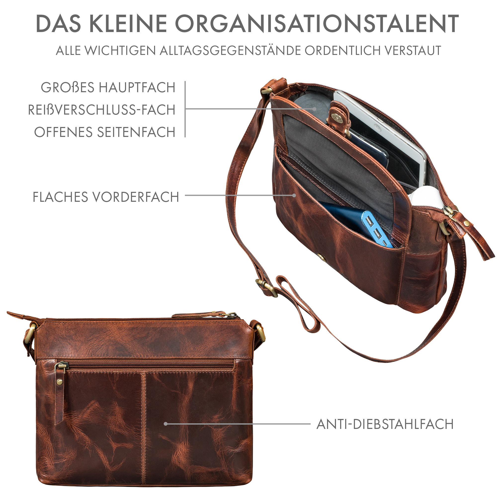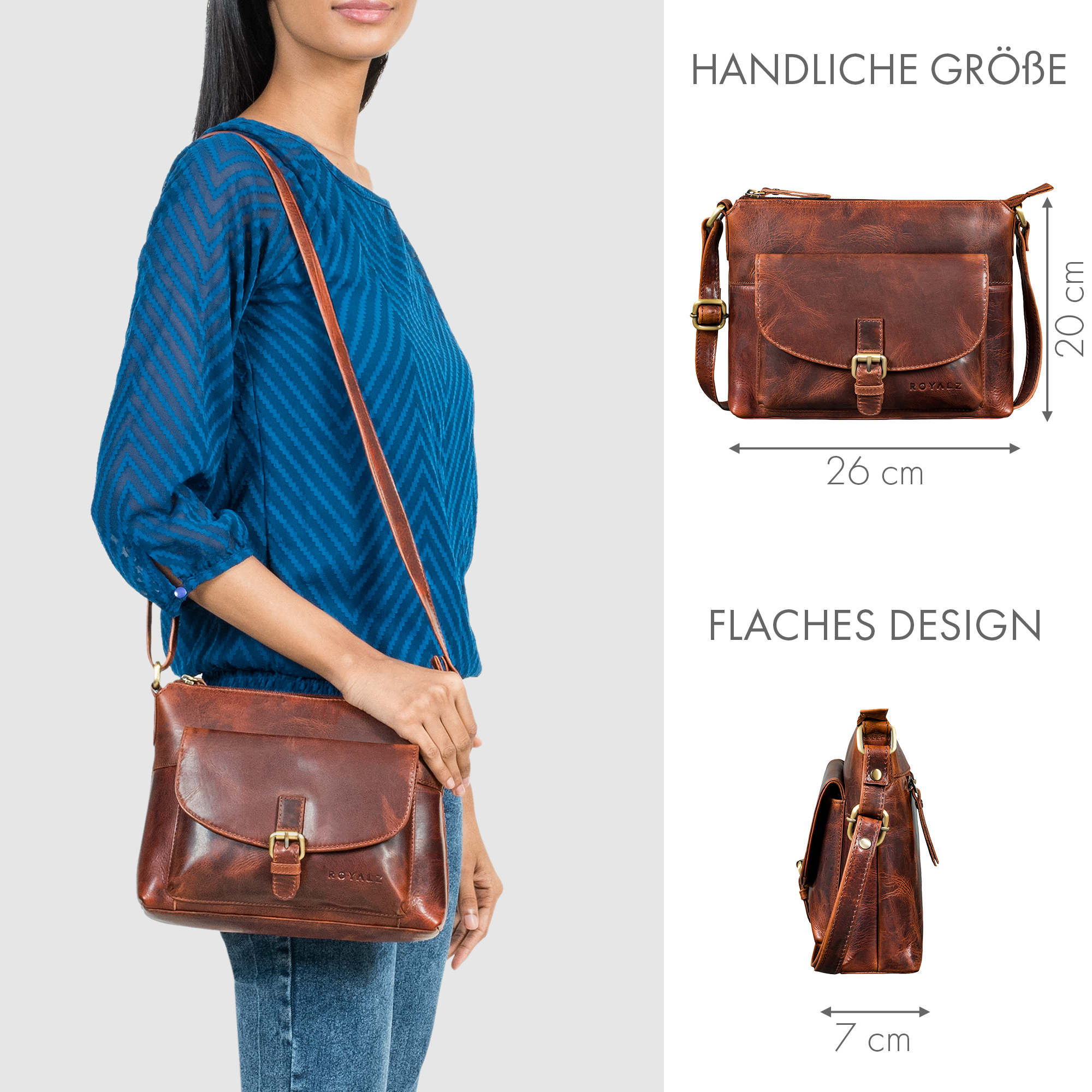 ROYALZ "Maine" moderne Vintage Damenhandtasche Leder klein - Echtleder Umhängetasche Damen Handtasche als Crossbody Bag oder Schultertasche für Freizeit Ausgehen Alltag