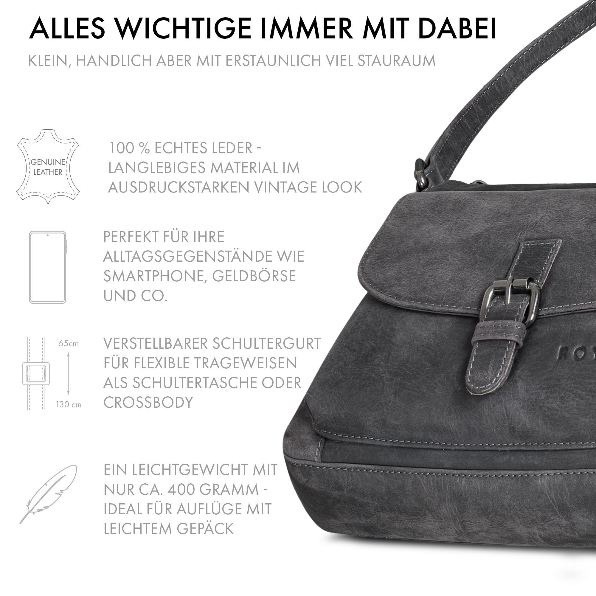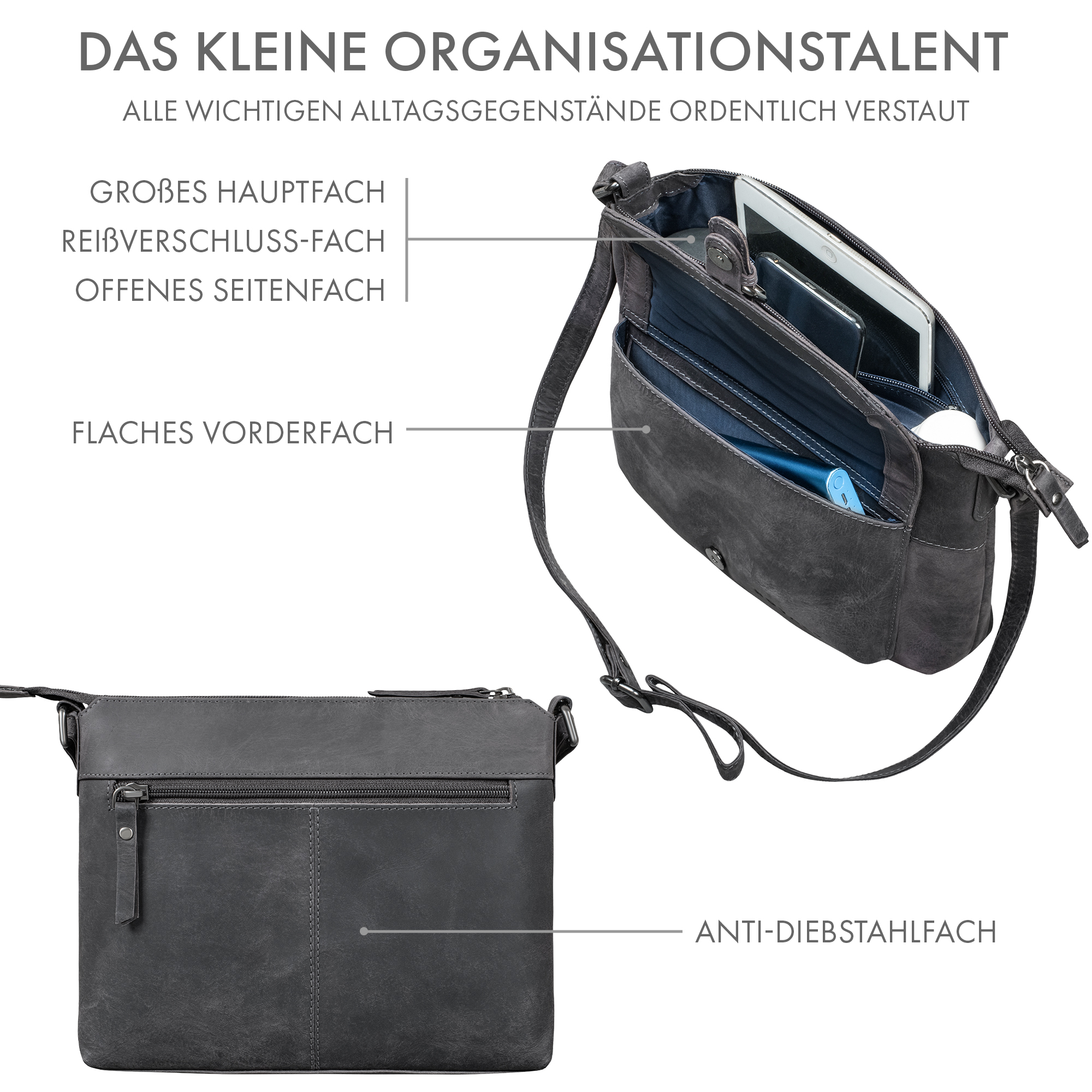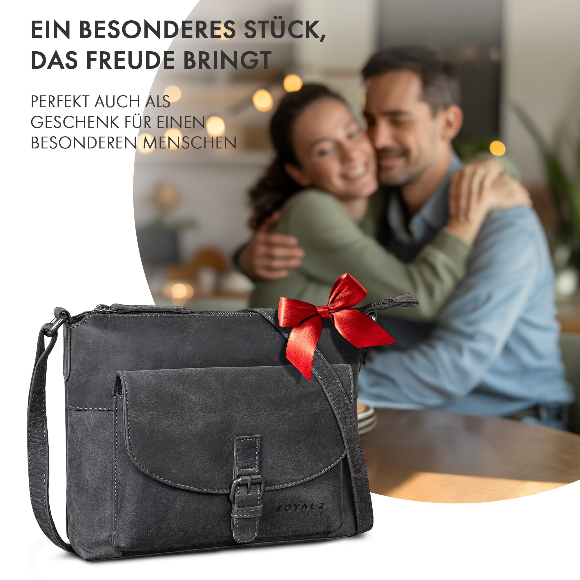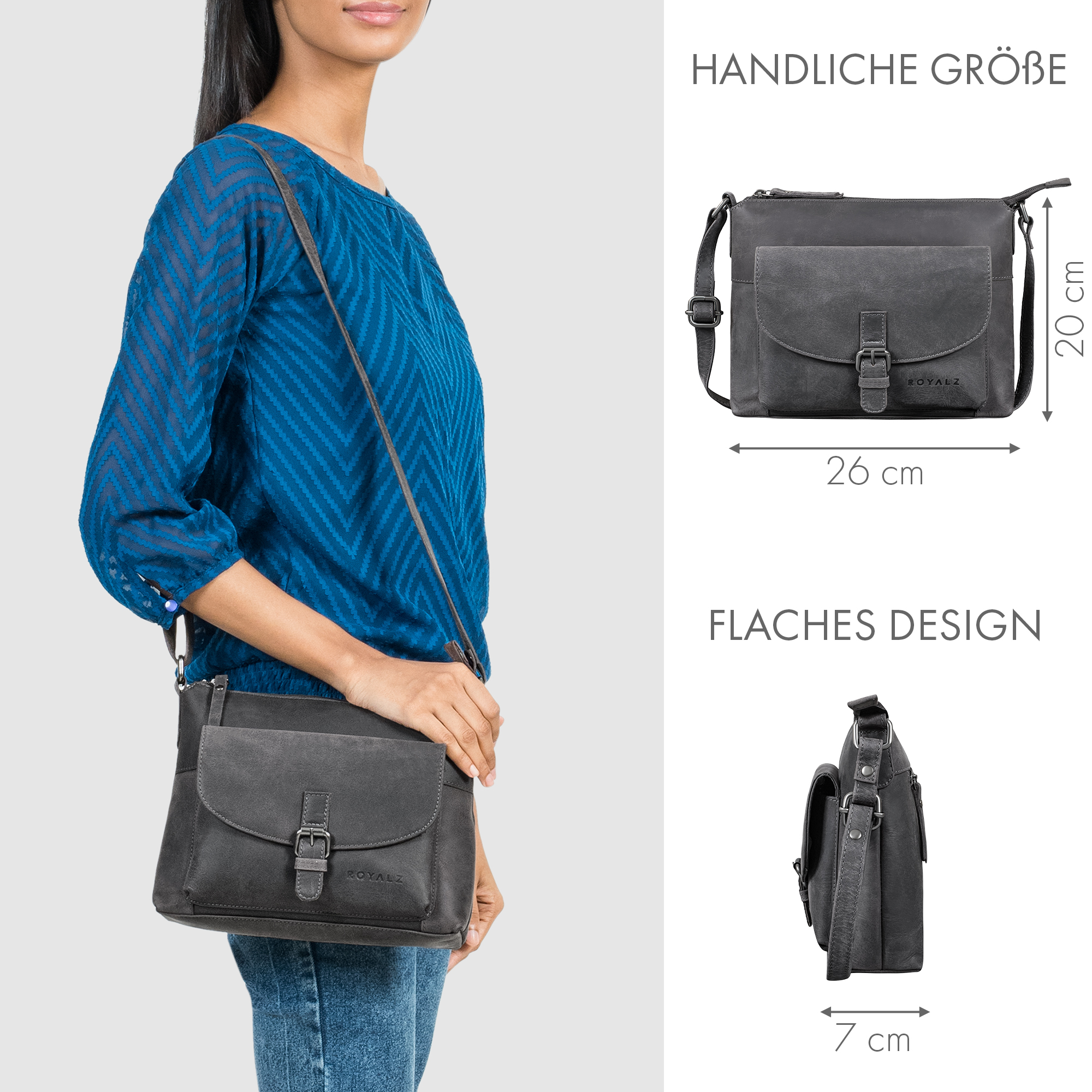 ROYALZ "Maine" moderne Vintage Damenhandtasche Leder klein - Echtleder Umhängetasche Damen Handtasche als Crossbody Bag oder Schultertasche für Freizeit Ausgehen Alltag