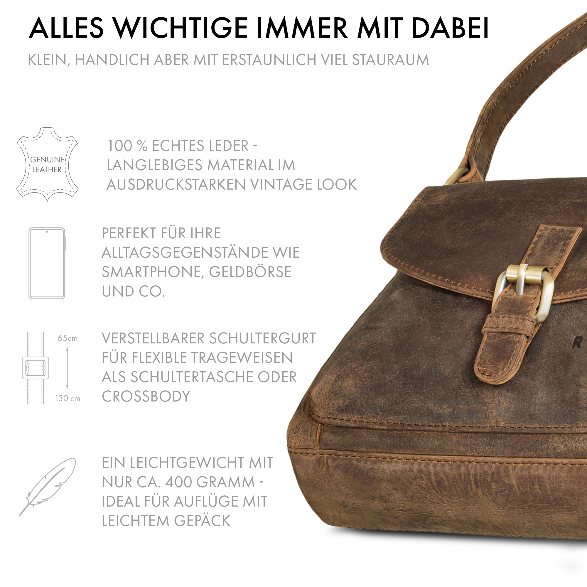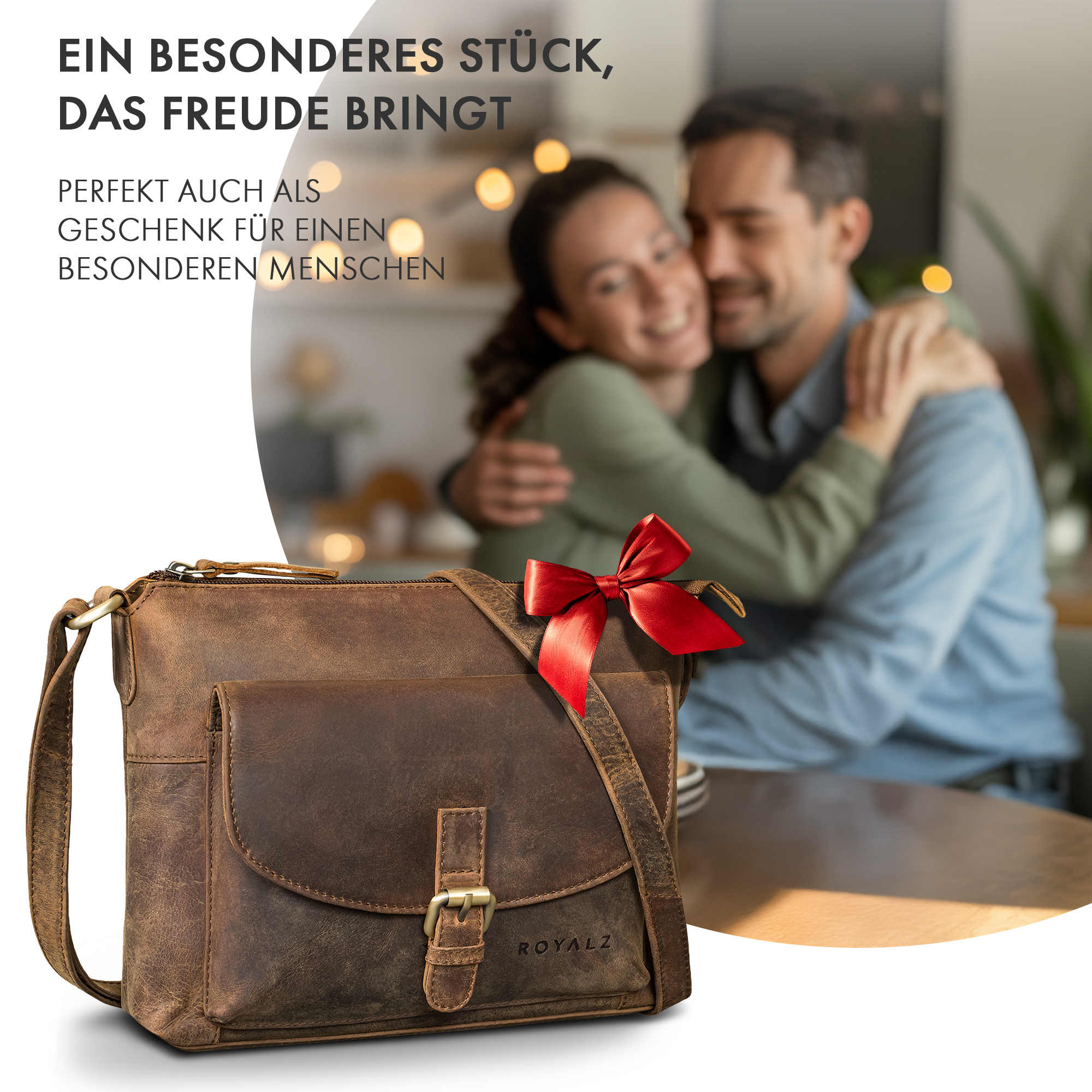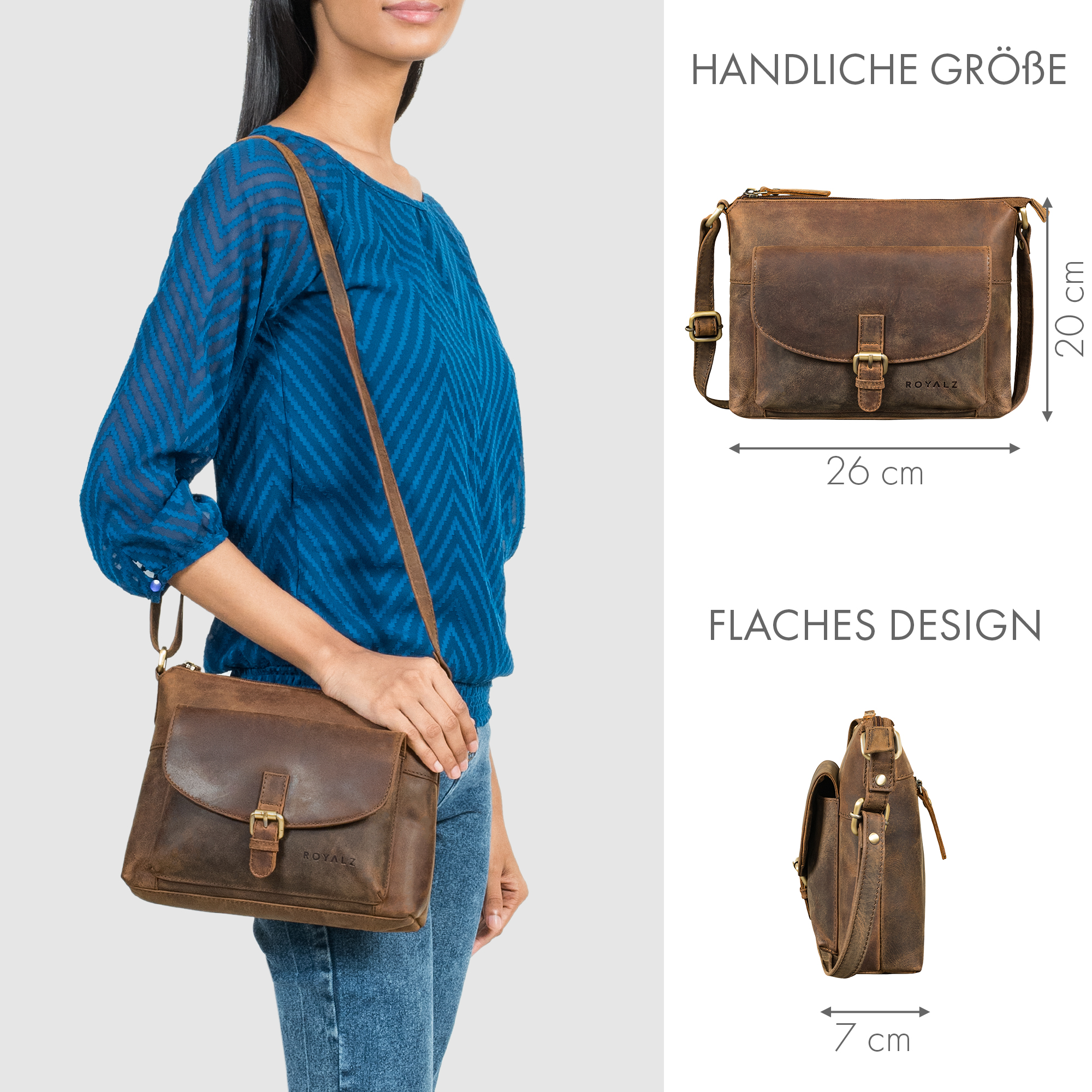 ROYALZ "Maine" moderne Vintage Damenhandtasche Leder klein - Echtleder Umhängetasche Damen Handtasche als Crossbody Bag oder Schultertasche für Freizeit Ausgehen Alltag