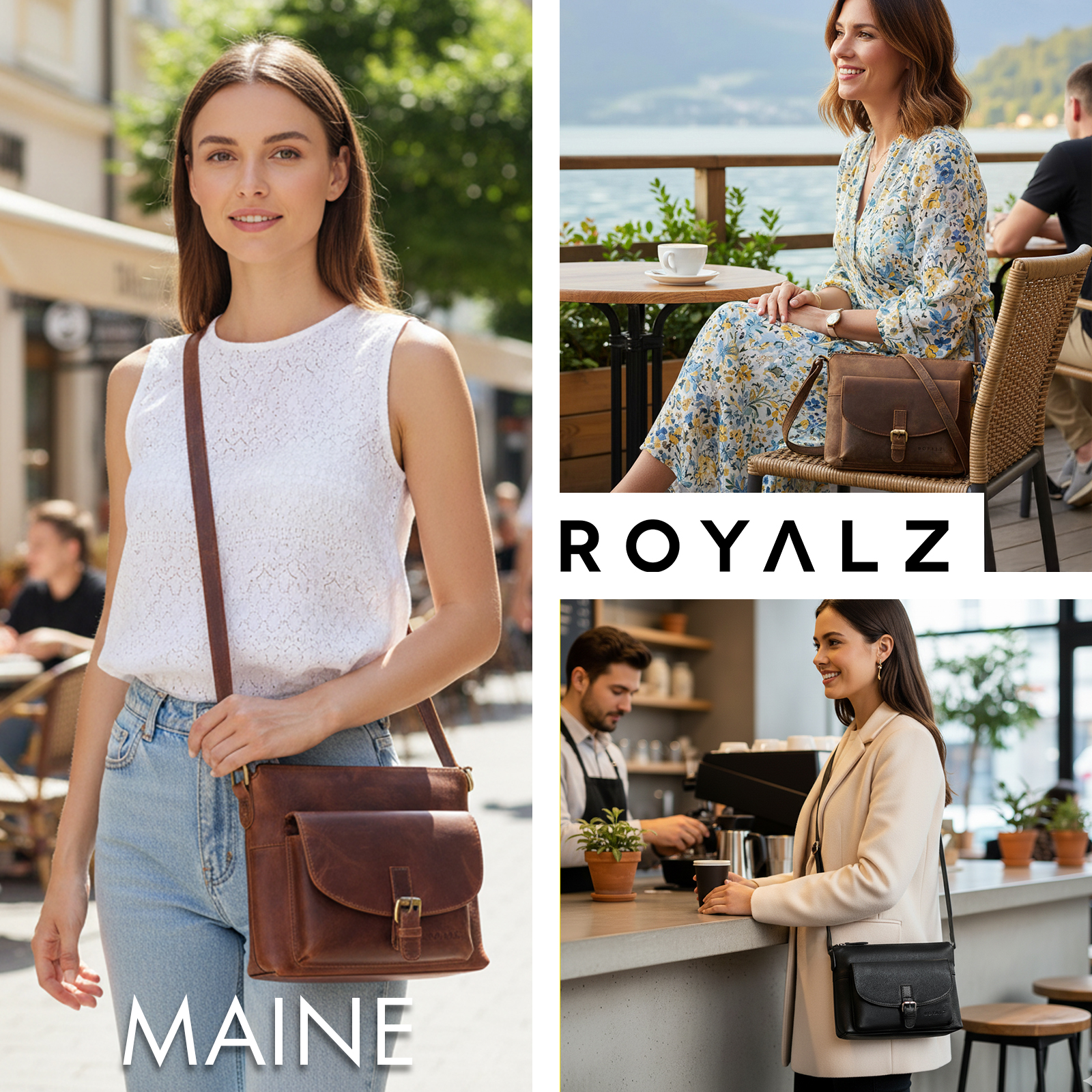 Die ROYALZ "Maine" Echtleder Schultertasche Damen als idealen Begleiter für ihren Tag