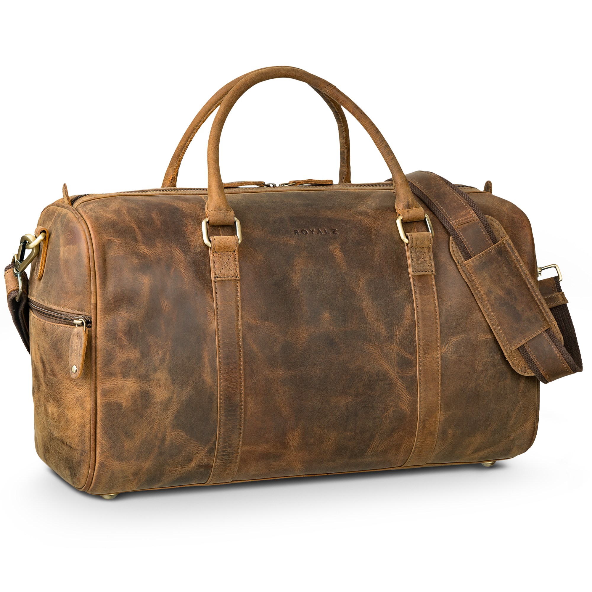 - PRODUKTDETAILS AUF EINEN BLICK – Maße (LxBxH): 47 x 20 x 24 cm | Gewicht 998 g | Material wasserabweisendes Echtleder | Abnehmbarer Schultergurt mit Polster längen - verstellbar 90 bis 145 cm | Marke: ROYALZ